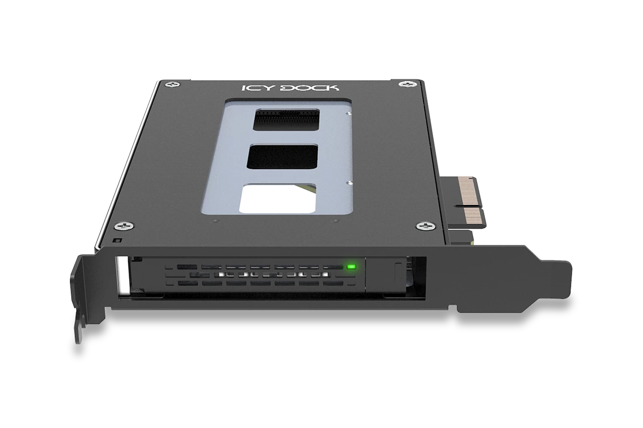 Icy Dock MB111VP-B ToughArmor 1x kivehető 2.5" U.2/U.3 NVMe SSD port bővítő PCIe kártya