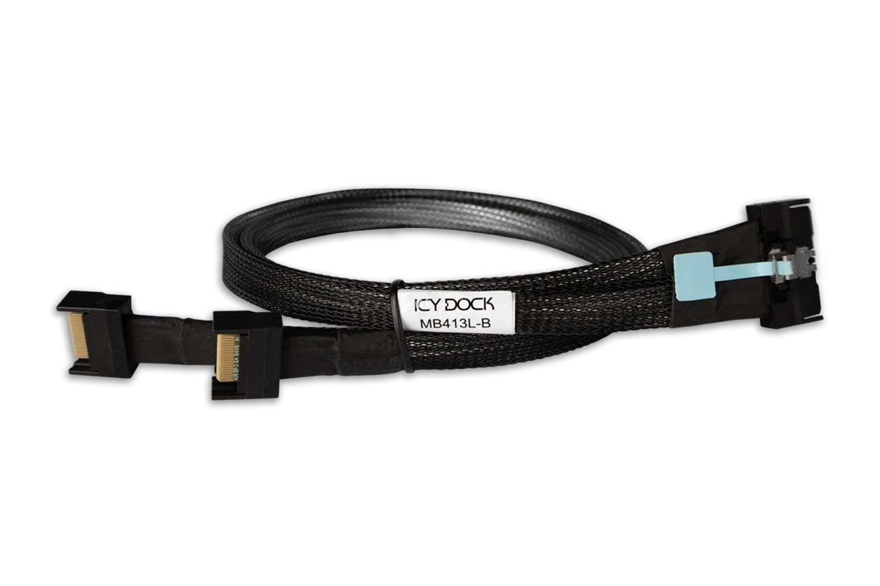 Icy Dock MB413L-B PCIe kábel 0.5m (MCIO x8 SFF-TA-1016 - 2x MCIO x4 SFF-TA-1016)