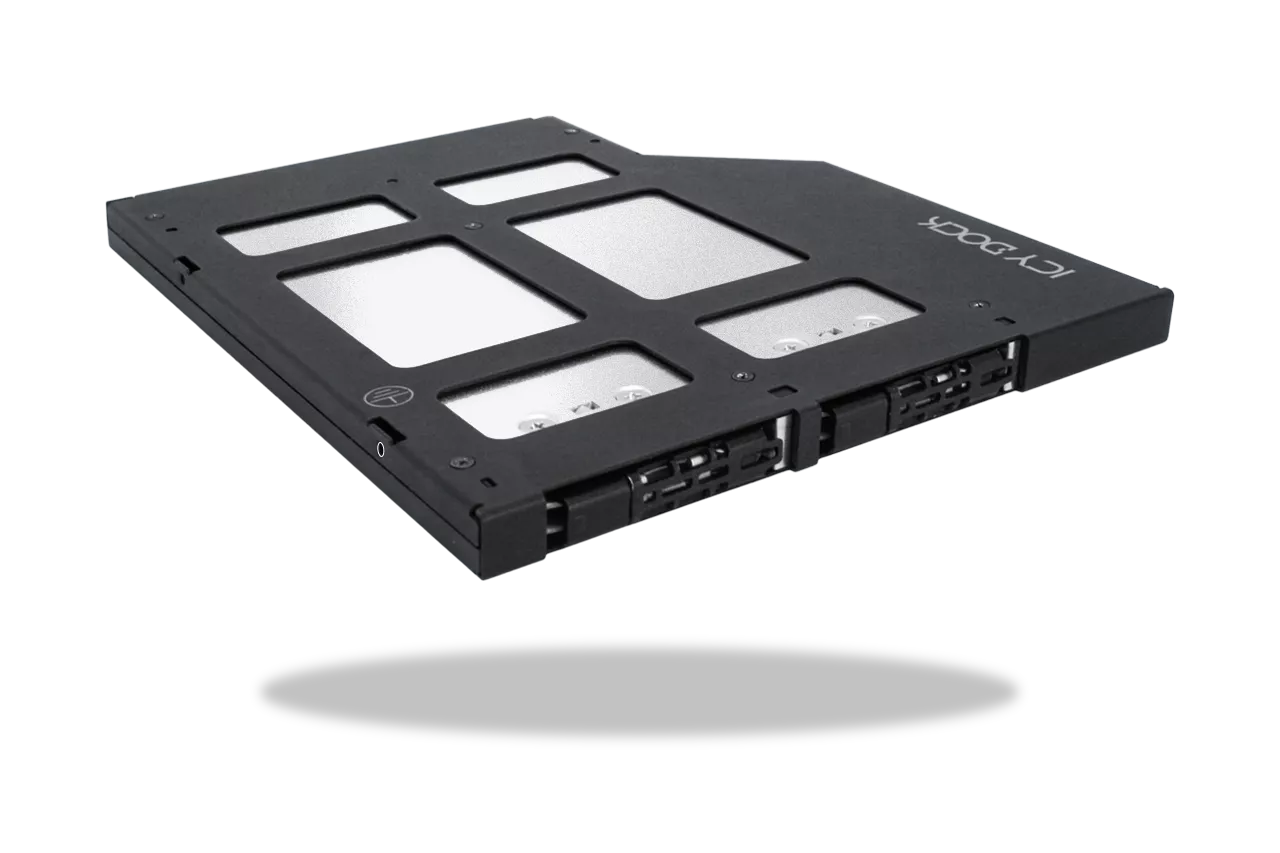 A ToughArmor családhoz tartozó, professzionális kialakítású beépítőkeret két nagy teljesítményű M.2 NVMe SSD fogadására készült, kifejezetten 9,5 mm magas, ultra slim optikai meghajtóhely (ODD) kiváltására. Ideális választás ipari PC-khez, rackmount szerverekhez, beágyazott rendszerekhez és minden olyan felhasználáshoz, ahol a megbízhatóság, a strapabírás és a könnyű karbantartás alapkövetelmény.