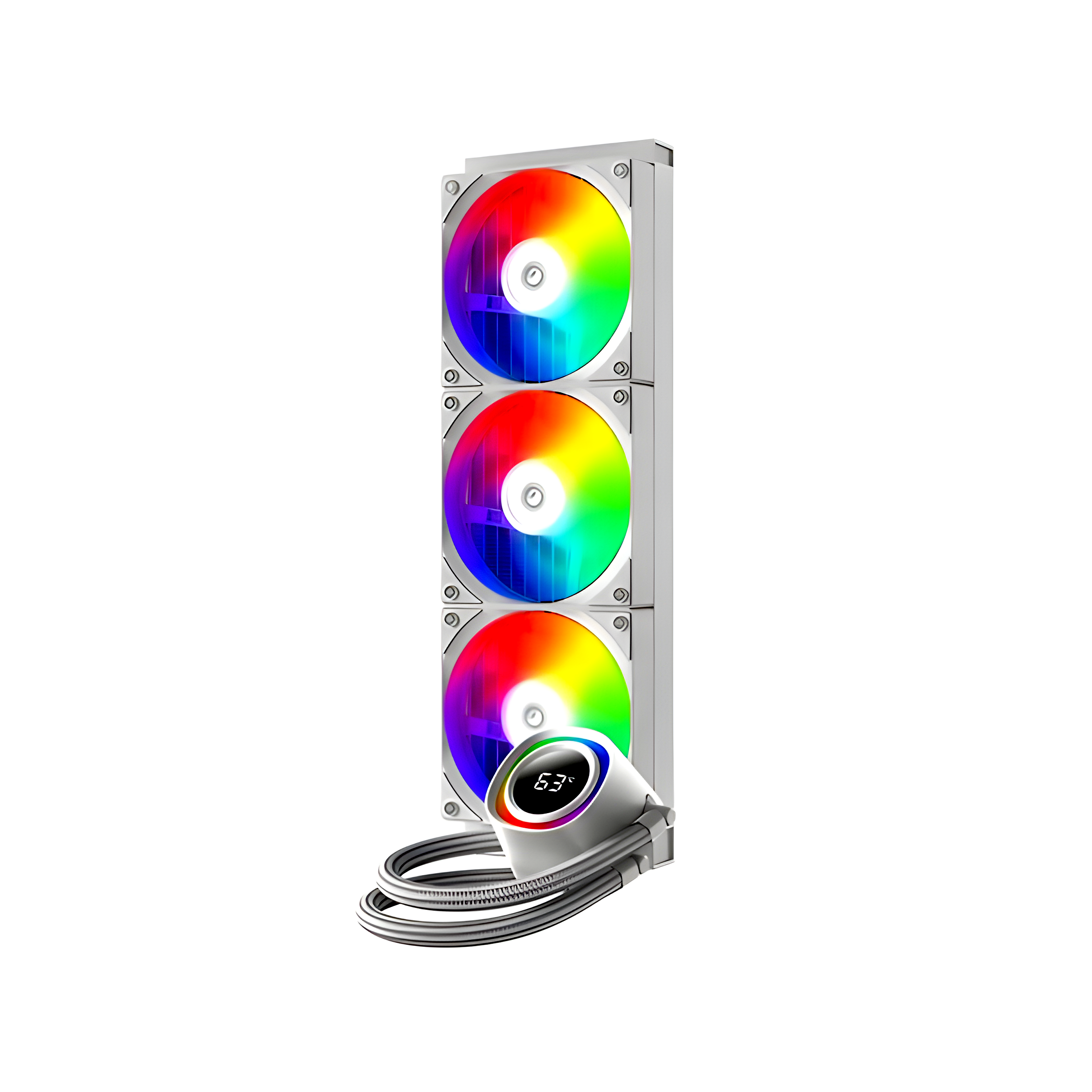A-rgb (Addressable RGB) világítással ellátott ventilátorok és vízblokk gondoskodnak arról, hogy a rendszer látványban is illeszkedjen egy modern gamer vagy bemutatógéphez. A 5V 3-pin ARGB csatlakozón keresztül az effektek a legtöbb modern alaplappal szinkronizálhatók, így egységes fényshow hozható létre. A teljesen fehér színvilág különösen a világos, üveg oldallapos házakban érvényesül.