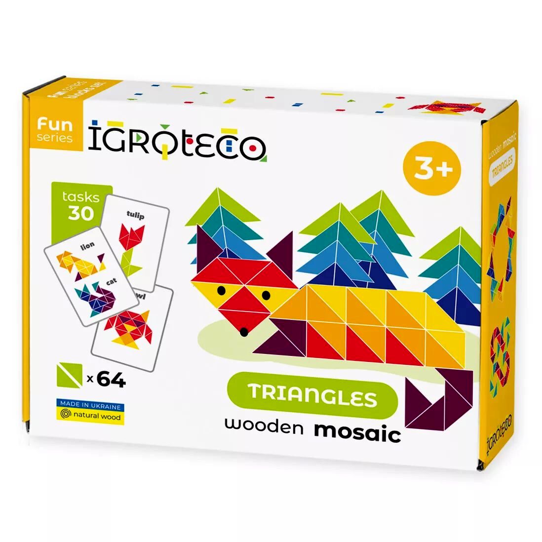 A mozaik elemek 5 mm vastagságú tömör fából készültek, és vízbázisú, tanúsított festékekkel színezettek, biztosítva a biztonságos játékélményt.