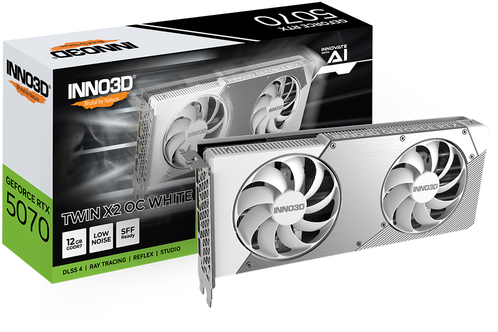 Az Inno3D GeForce RTX 5070 TWIN X2 OC WHITE egy kompakt erőmű, amely ideális választás a helytakarékos megoldásokat kereső játékosok számára. Kétslotos kialakításának köszönhetően könnyedén illeszkedik a kisebb formátumú házakba is, és lenyűgöző, modern fehér megjelenést nyújt.