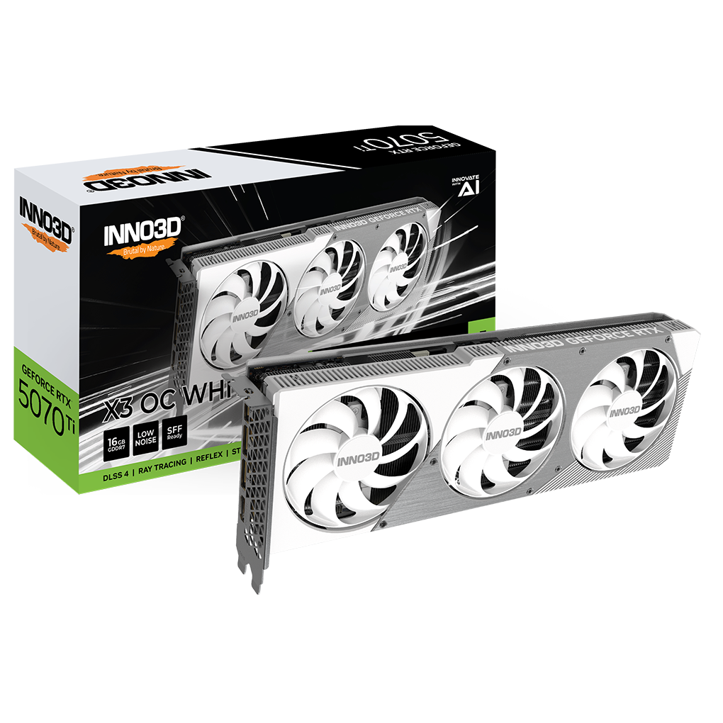 Az Inno3D a grafika innovációjának élvonalában áll, és a GeForce RTX 5070 Ti X3 OC fehér modell nemcsak teljesítményében lenyűgöző, hanem stílusában is. Tökéletes választás mindenki számára, aki a legjobb játék- és alkotási élményt keresi, miközben egyedi megjelenésű PC-t épít.