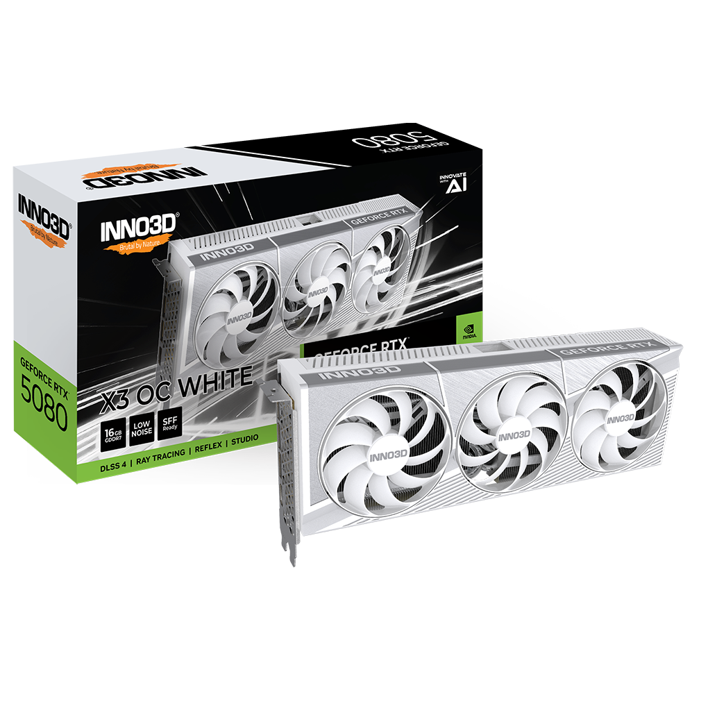 A INNO3D GeForce RTX 50 sorozat páratlan teljesítményt kínál ezekkel a következő generációs grafikus kártyákkal, amelyek az NVIDIA Blackwell architektúráján alapulnak. Az INNO3D GeForce RTX 5080 X3 OC Fehér modell új szintre emeli a grafikai technológiát, beállítva az új teljesítmény mércét. Ez a káprázatos fehér kivitelű dizájn és a csúcstechnológia harmonikus egysége révén az INNO3D széles körű elismerésre tett szert, és megszilárdította helyét az innováció élvonalában.