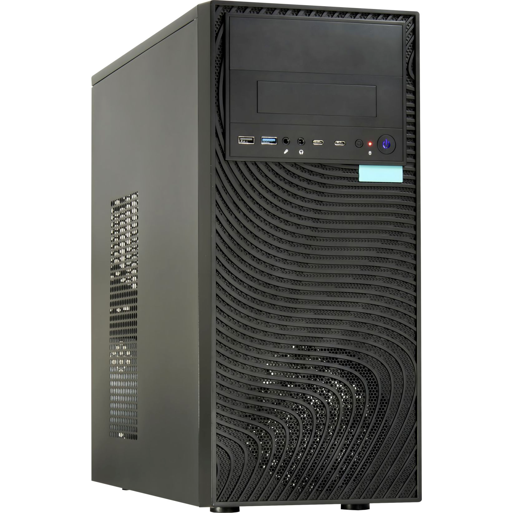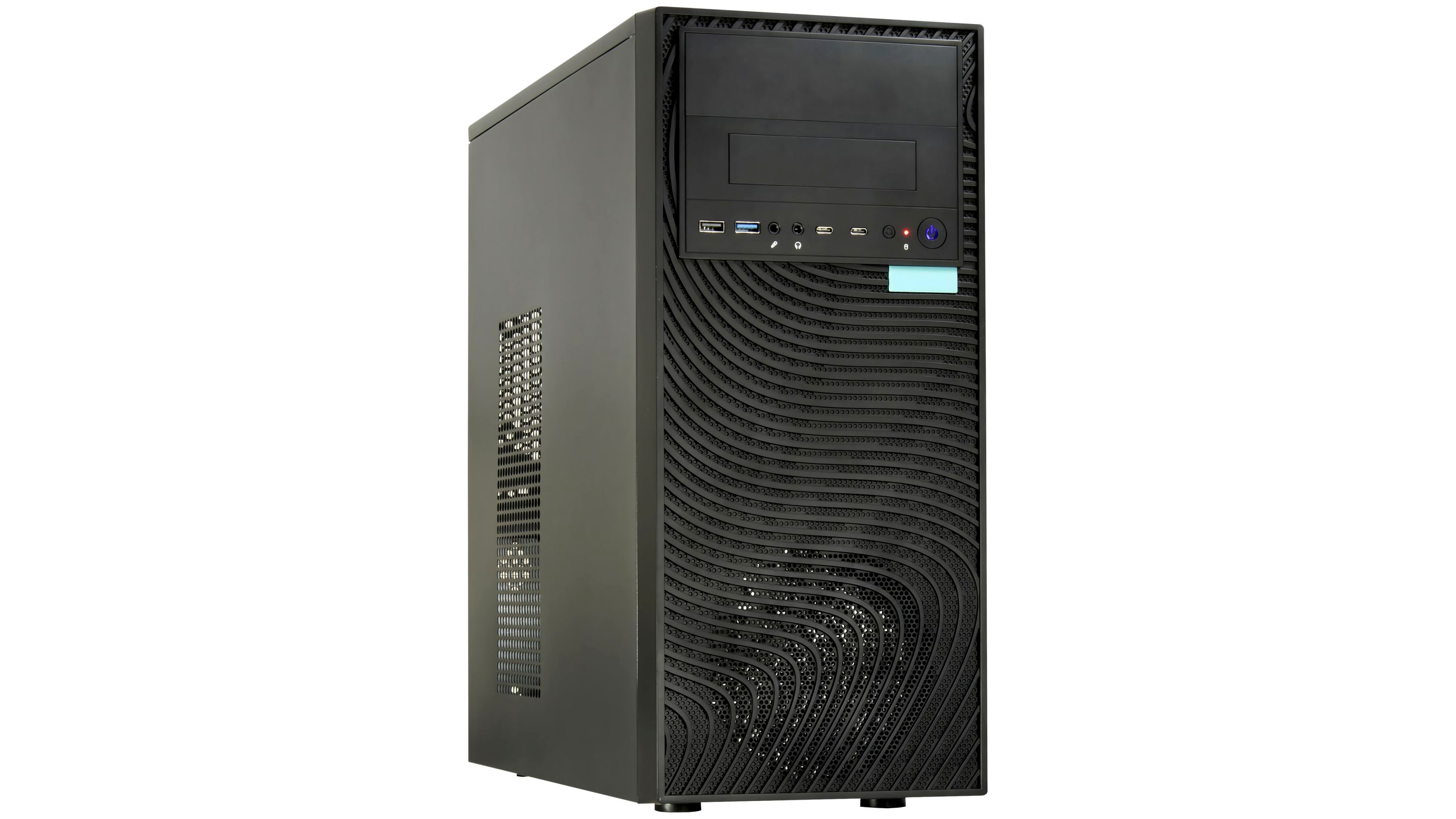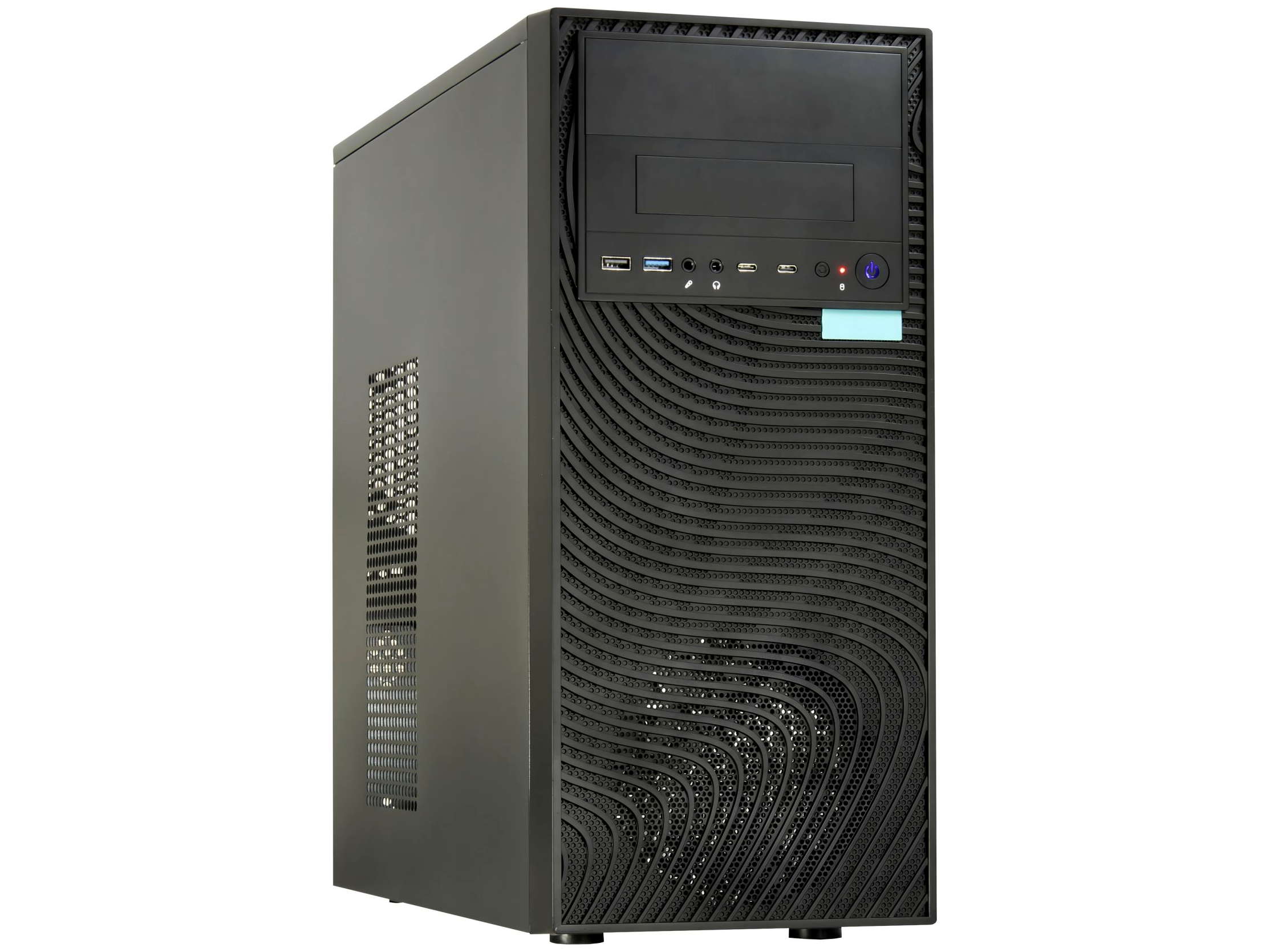 • Korszerű csatlakozók elöl: USB-C és USB-A 3.2 Gen 1/2 portokkal, valamint klasszikus USB 2.0 és audio csatlakozókkal felszerelve, hogy a legújabb eszközök is gond nélkül használhatók legyenek.