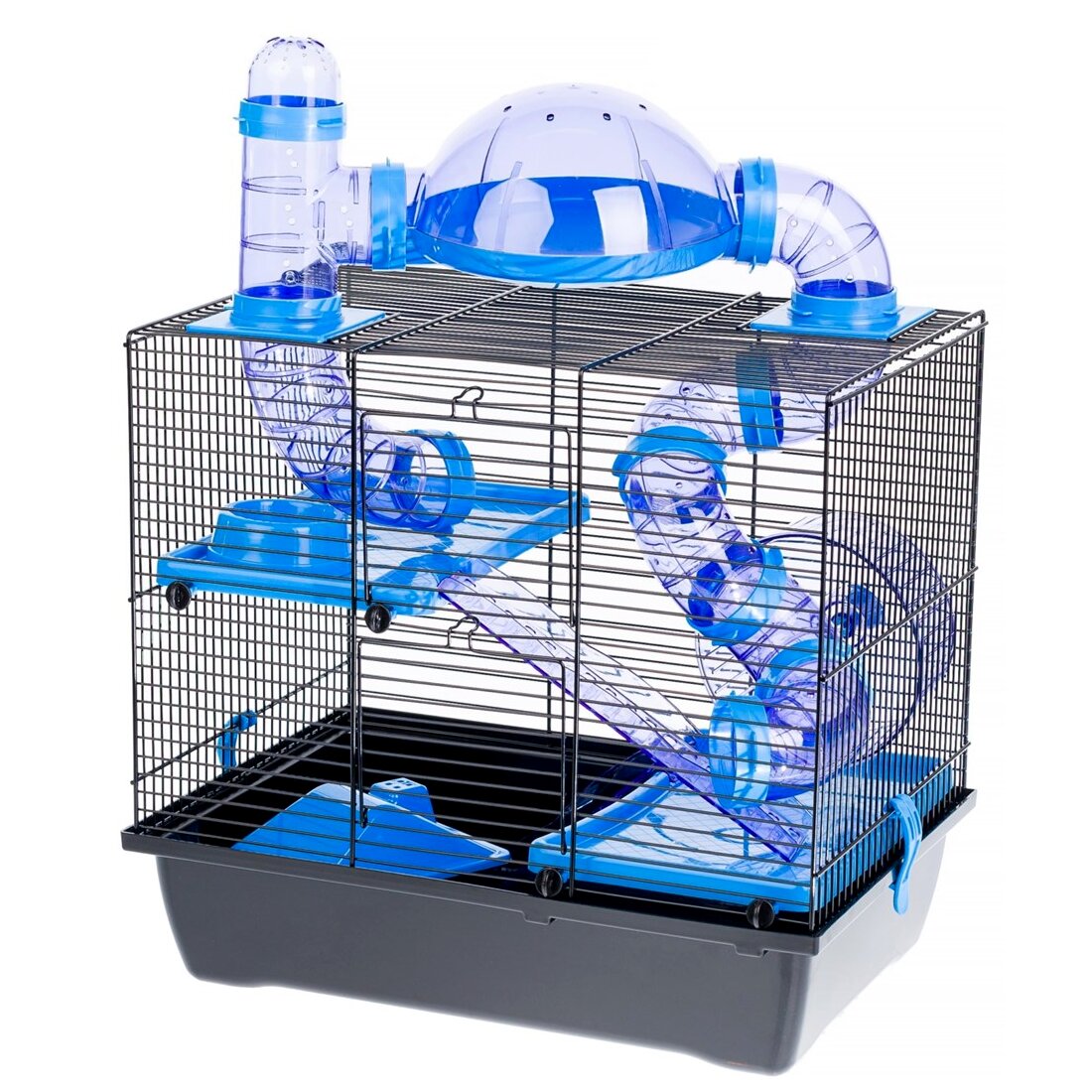 - Többszintes Elrendezés: A ketrec belső kialakítása több szinten biztosít helyet a mozgáshoz és a játékozáshoz.