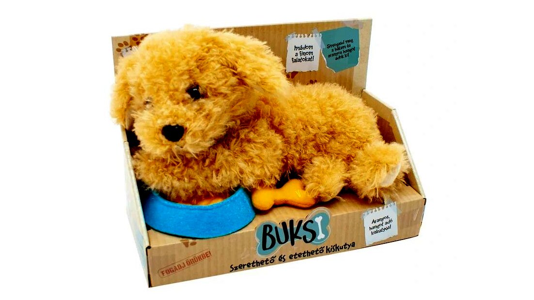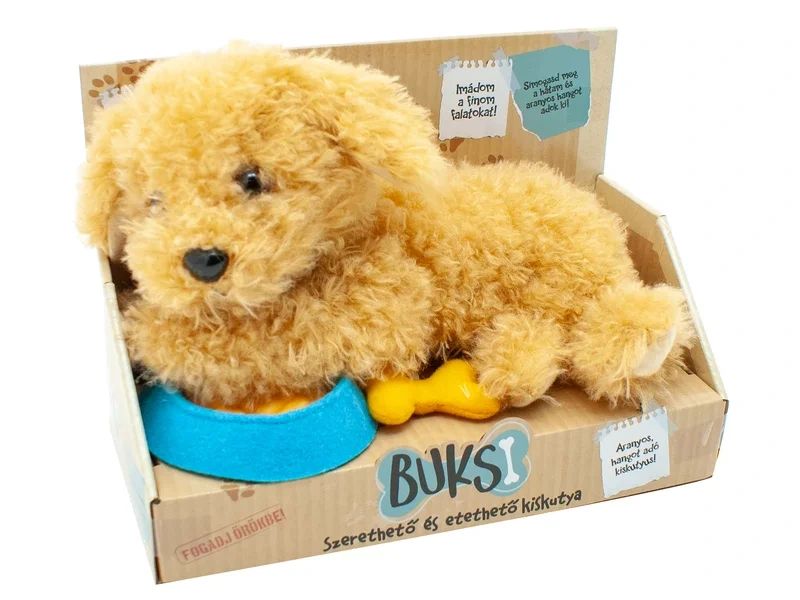 Buksi kutyus egy szerethető és etethető kiskutya, a gyerekek úgy játszhatnak vele, mint egy igazi kiskutyával. Ha megsimogatják a hátát, aranyos hangot ad ki, kedvesen nyüszítve jelzi, amikor éhes. Ilyenkor elég elé tenni a tálkáját vagy kedvenc csontját, és hangosan falatozni kezd, vidám vakkantásokkal kísérve.