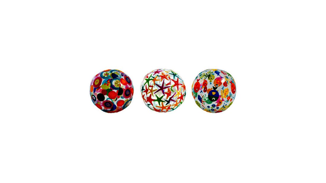 Színes mintákkal díszített, 51 cm-es átmérőjű felfújható strandlabda. Ideális játék strandra, vízpartra, főleg a forró nyári napokon.