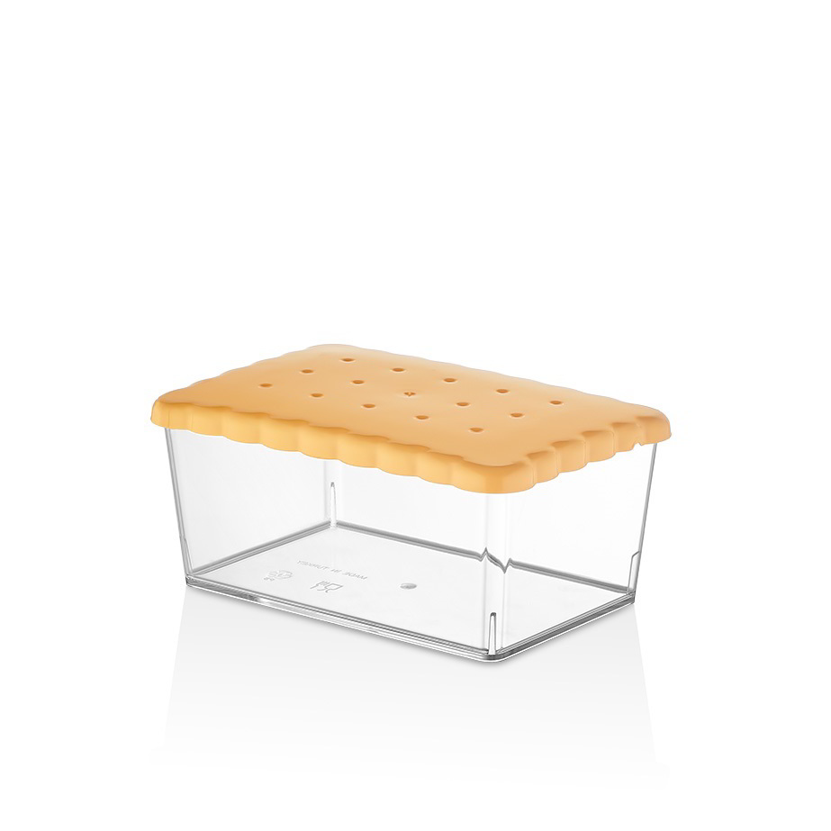 A doboz ideális száraz élelmiszerekhez: keksz, linzer, teasütemény, ostya, nápolyi, sós ropik, puffasztott snackek, cukorkák, kisebb csomagolt nassolnivalók. Kompakt méretének köszönhetően egyszerűen elfér konyhapulton, polcon vagy fiókban, és átlátszó kialakítása segít abban, hogy mindig időben észrevedd, mikor fogyóban a kedvenc finomság.