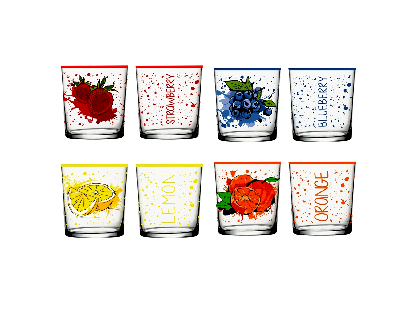 A pohár tökéletes választás azok számára, akik a mindennapokban is szeretik a szépséget és az eleganciát, legyen szó reggeli kávéról vagy esti koktélról. A különböző gyümölcsminták - Blueberries, Lemon vagy Orange - frissességet és változatosságot visznek asztalára.
