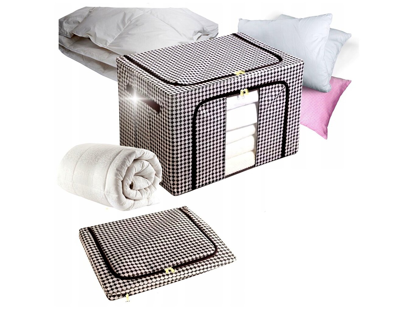 - Felhasználási terület: ruhák, ágyneműk, takarók, törölközők, szezonális textíliák, gyerekruhák, kiegészítők rendszerezése