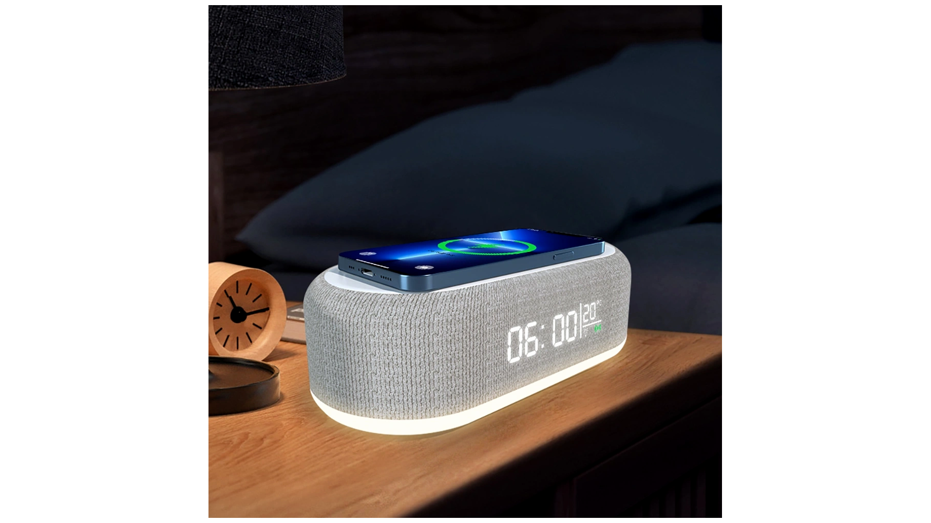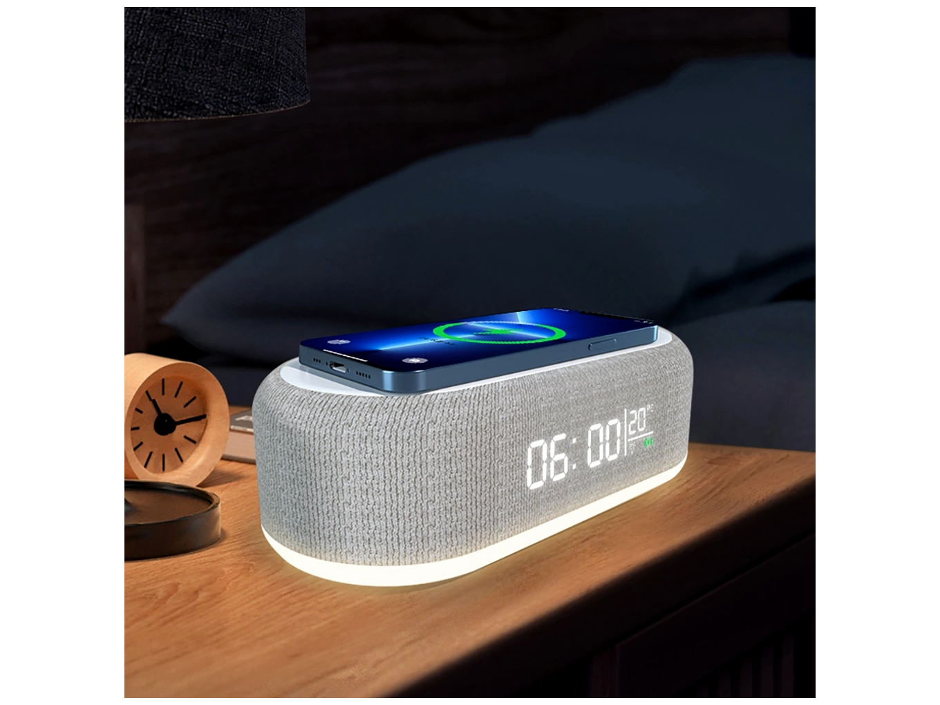Az éjjeliszekrények és íróasztalok gyakran túlzsúfoltak: külön töltő, külön lámpa, külön óra, külön Bluetooth hangszóró foglalja a helyet. Egy ilyen többfunkciós megoldás segít rendet teremteni, miközben minden fontos funkció kényelmesen elérhető marad egyetlen eszközben. A vezeték nélküli gyorstöltés csökkenti a kábelrengeteget, az éjjeli fény és a színes világítás meghitt hangulatot teremt, a Bluetooth hangszóróval pedig bármikor zenét hallgathatsz vagy filmet nézhetsz jobb hangminőséggel, mint a telefon beépített hangszóróján.