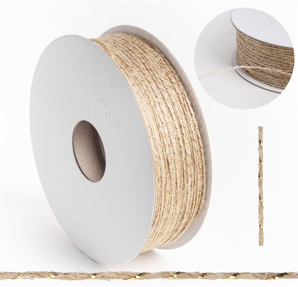 Az Iris Juta szalag fémszállal tökéletes választás mindazok számára, akik elegáns és tartós csomagolóanyagot keresnek. A natúr/arany színkombináció ideális karácsonyi ajándékok csomagolásához, de bármilyen különleges alkalomhoz tökéletesen illeszkedik.