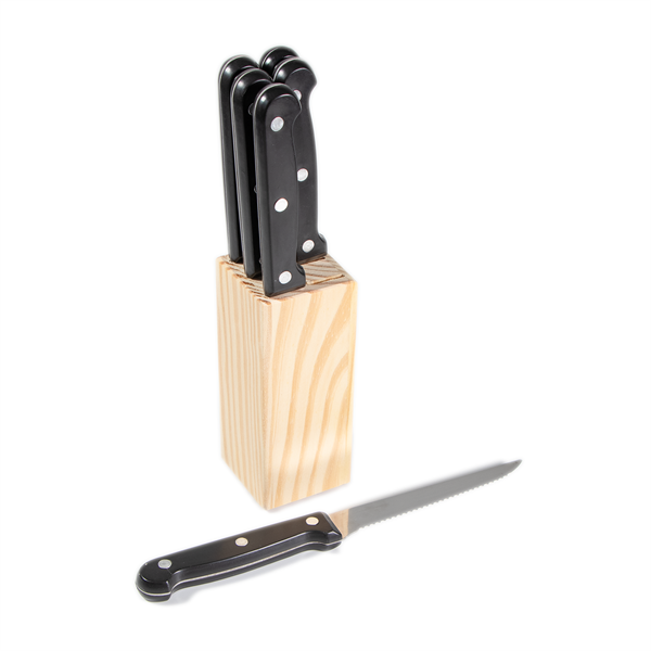 A hullámos élű pengék biztosítják, hogy még a legkeményebb húsok is könnyedén szeletelhetők legyenek, minimalizálva így a hús szálainak roncsolódását. Az ergonomikus markolatnak köszönhetően a kések hosszabb használat alatt is kényelmesek maradnak, a csúszásmentes bevonat pedig biztonságossá teszi őket. A fa tároló blokk nemcsak praktikus, hanem elegáns kiegészítője is bármelyik konyhának.