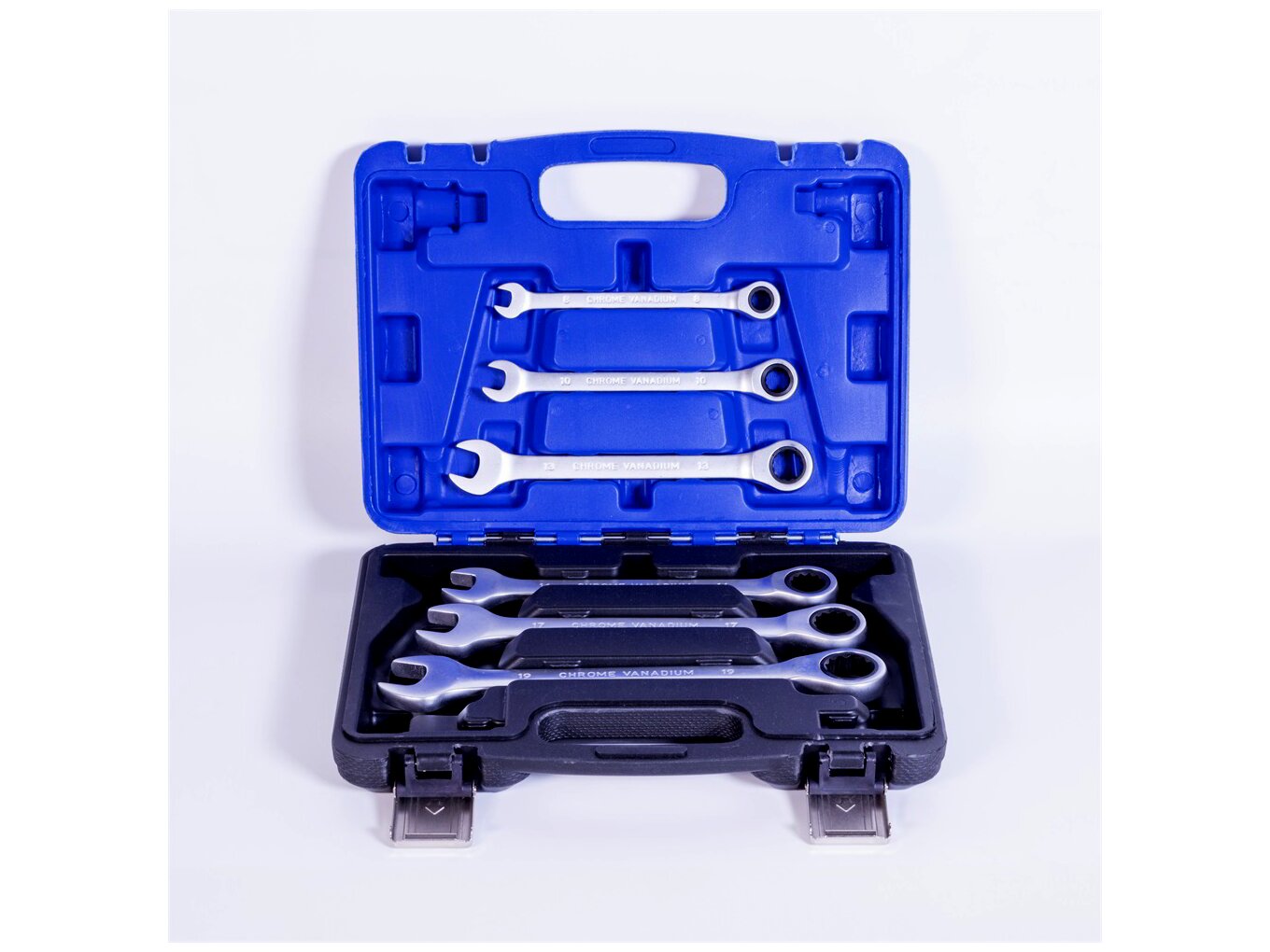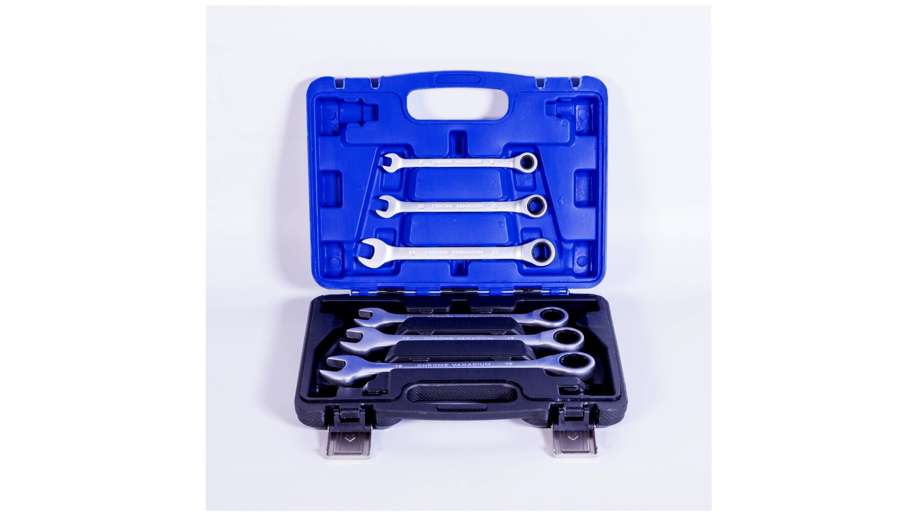• Kialakítás: kombinált (egyik végén villás, másik végén racsnis gyűrűs kulcs)