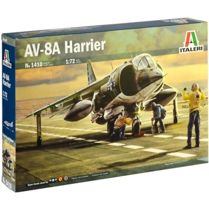 Italeri AV-8A vadászrepülőgép - 1/72 makett készlet. A műanyag modell készlet összeszerelést és festést igényel. A ragasztót és az akril festéket valamint az ecsetet nem tartalmazza a szett.