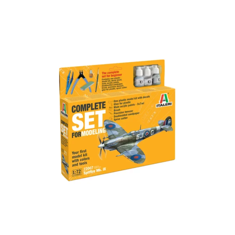A Spitfire Mk IX egy brit együléses vadászrepülőgép, mely a II. világháborúban szerzett hírnevet. A Spitfire típus a legnagyobb darabszámban gyártott szövetséges vadászrepülőgép, amely a háború alatt és azt követően is jelentős szerepet töltött be. Az Italeri által készített makett minden apró részletét gondosan kidolgozták, hogy hűen visszaadja az eredeti repülőgép formáját és megjelenését.