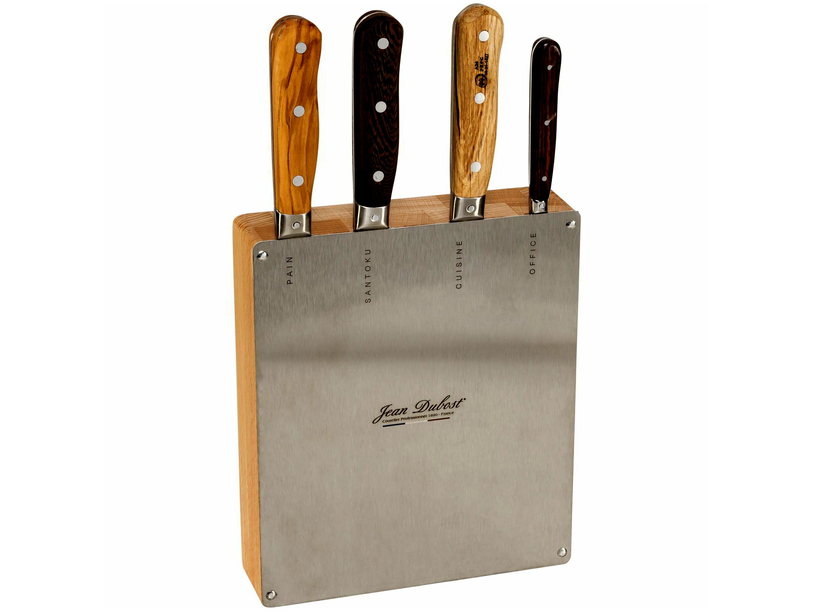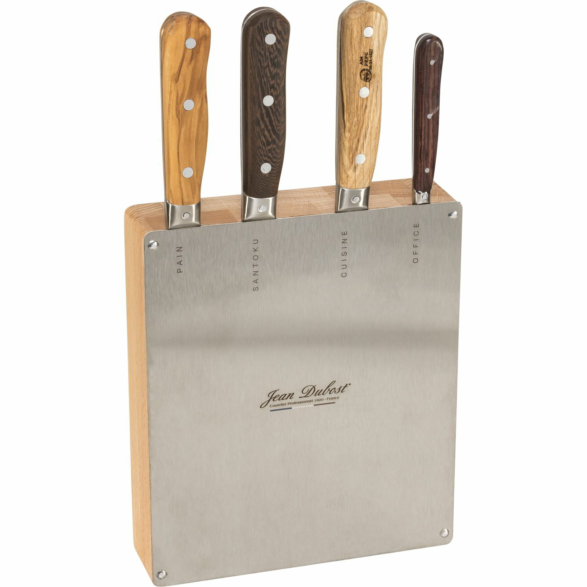 A Jean Dubost híres 1920-as kollekciójának Les Essences du Monde konyhakés blokkja négy specializált kést tartalmaz: kenyérvágó, santoku, konyhakés és hámozókés. Minden egyes kés különleges fa nyéllel rendelkezik, amely négy különböző fafajtából készült: a kenyérvágó kése olívafából, a santoku kése wengefából, a konyhakés tölgyfából, míg a hámozókés violafából készült. A pengék rozsdamentes acélból készültek, így nagy tartósságot biztosítanak.