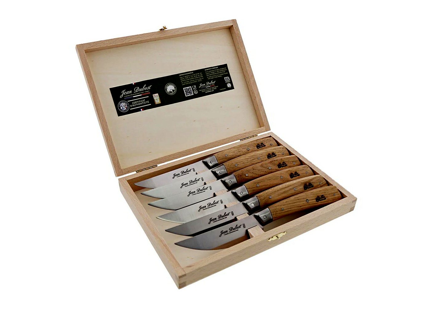 Jean Dubost 6 darabos Steak Kés Készlet, Olajfa Markolattal