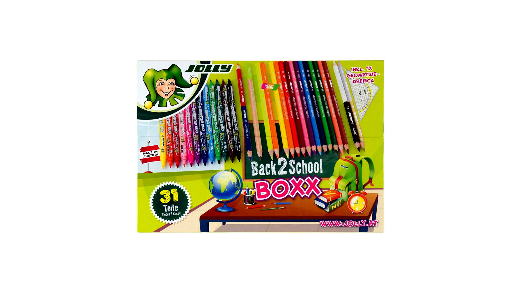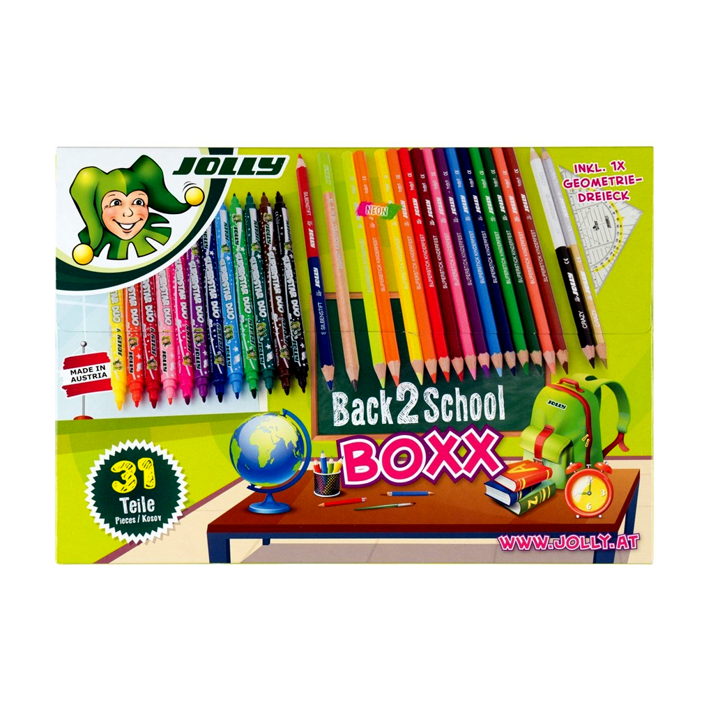 A Jolly Back To School All In Boxx készlet előnyei közé tartozik: