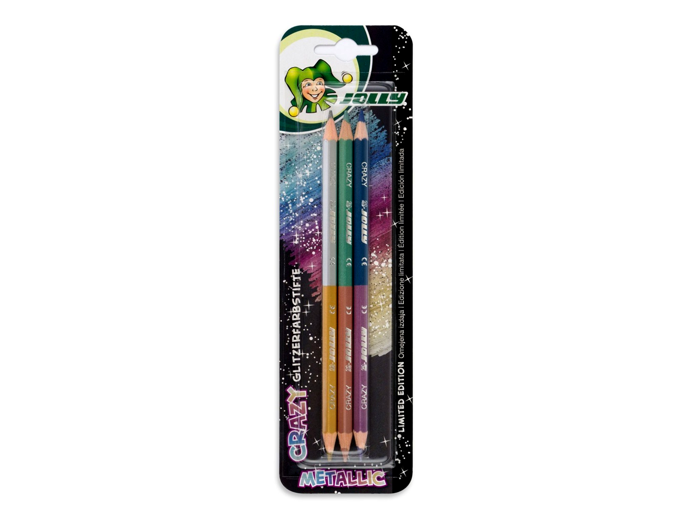 Szeretnél egy kis csillogással feldobni a rajzaidat? A Jolly Superstick Crazy Metallic Kétvégű metál színesceruza készlet ideális választás számodra! Ez a különleges ceruzakészlet segít életre kelteni fantáziadús alkotásaidat, köszönhetően a 3 db kétvégű metál színesceruzának, amelyek összesen 6 különböző színt kínálnak.