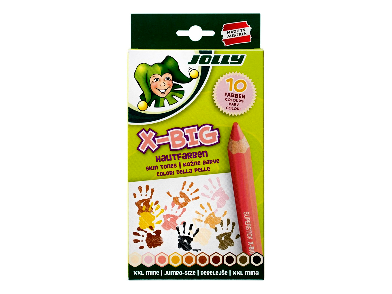 A Jolly X-Big Skin Tones színesceruza készlet különleges lehetőséget kínál mindazoknak, akik szeretik a részletek kidolgozását és az élethű portrék megalkotását. Ez az extra vastag színesceruza készlet, amely 10 darab krémes állagú, rendkívül élénk színű ceruzát tartalmaz különleges bőrszínekben, ideális választás lehet kicsiknek és nagyoknak egyaránt.