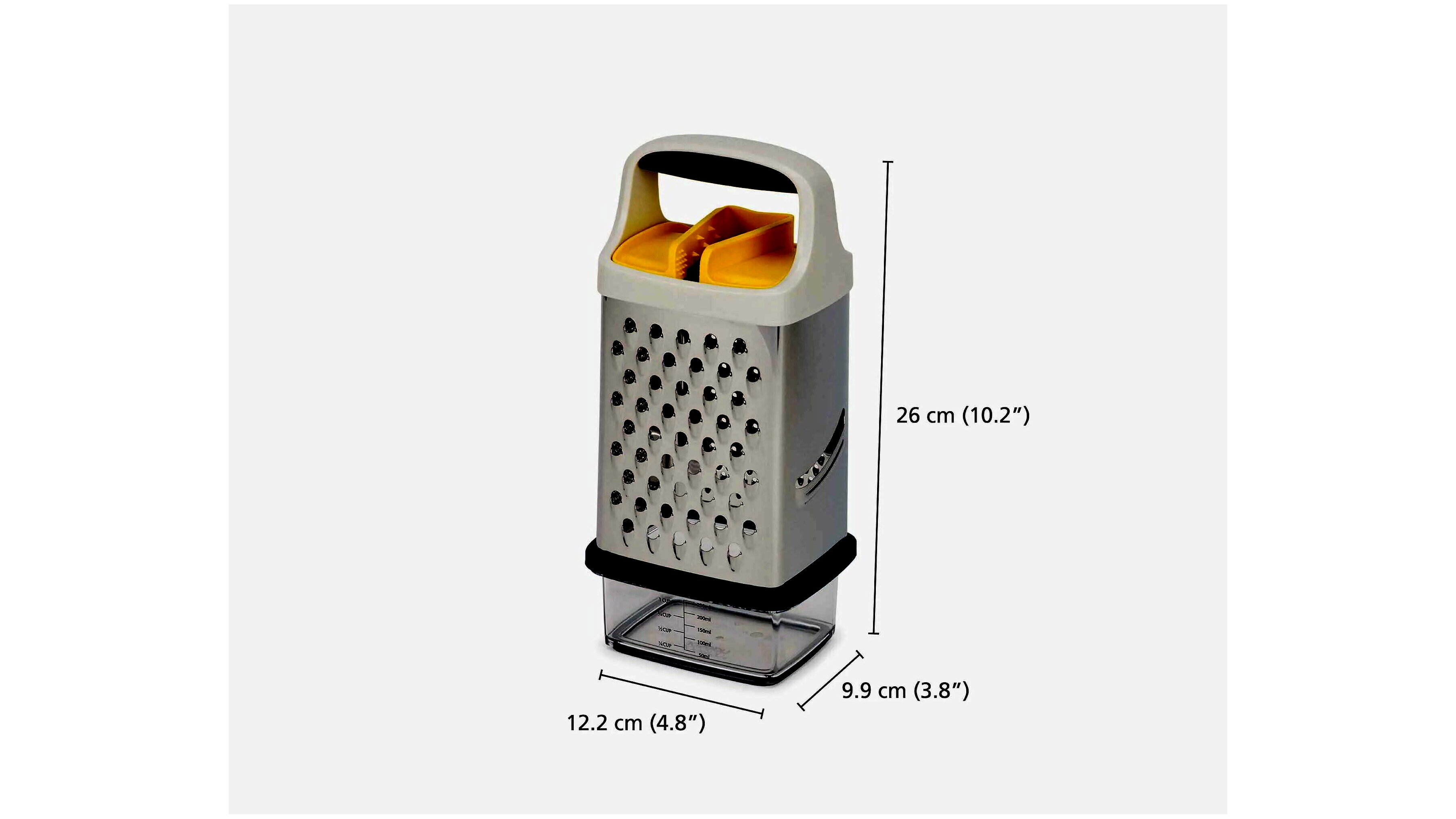 A Multi-Grip Box Reszelő tökéletes választás mindazok számára, akik szeretik az eleganciát és a funkcionalitást a konyhában. Kényeztesse magát és családját frissen reszelt ételekkel, legyen szó sajtról, zöldségről vagy gyümölcsről. Az intelligens és biztonságos dizájn lehetővé teszi a gyors és hatékony munkavégzést.