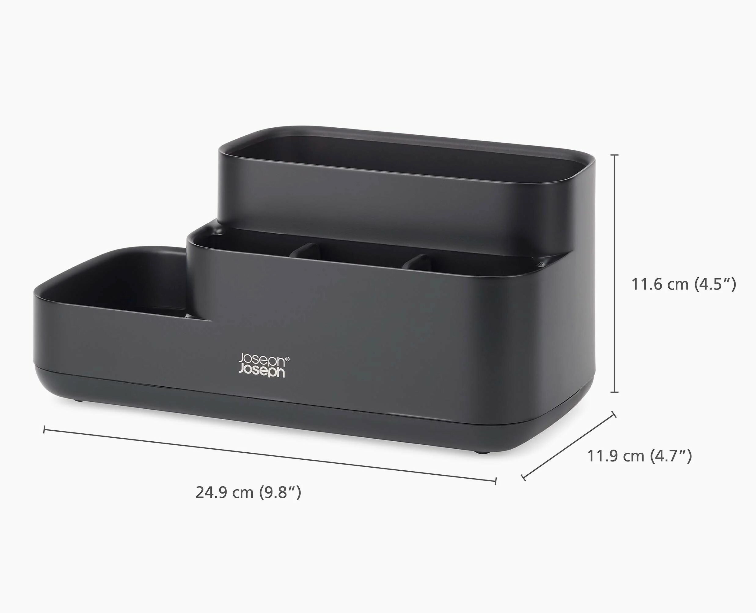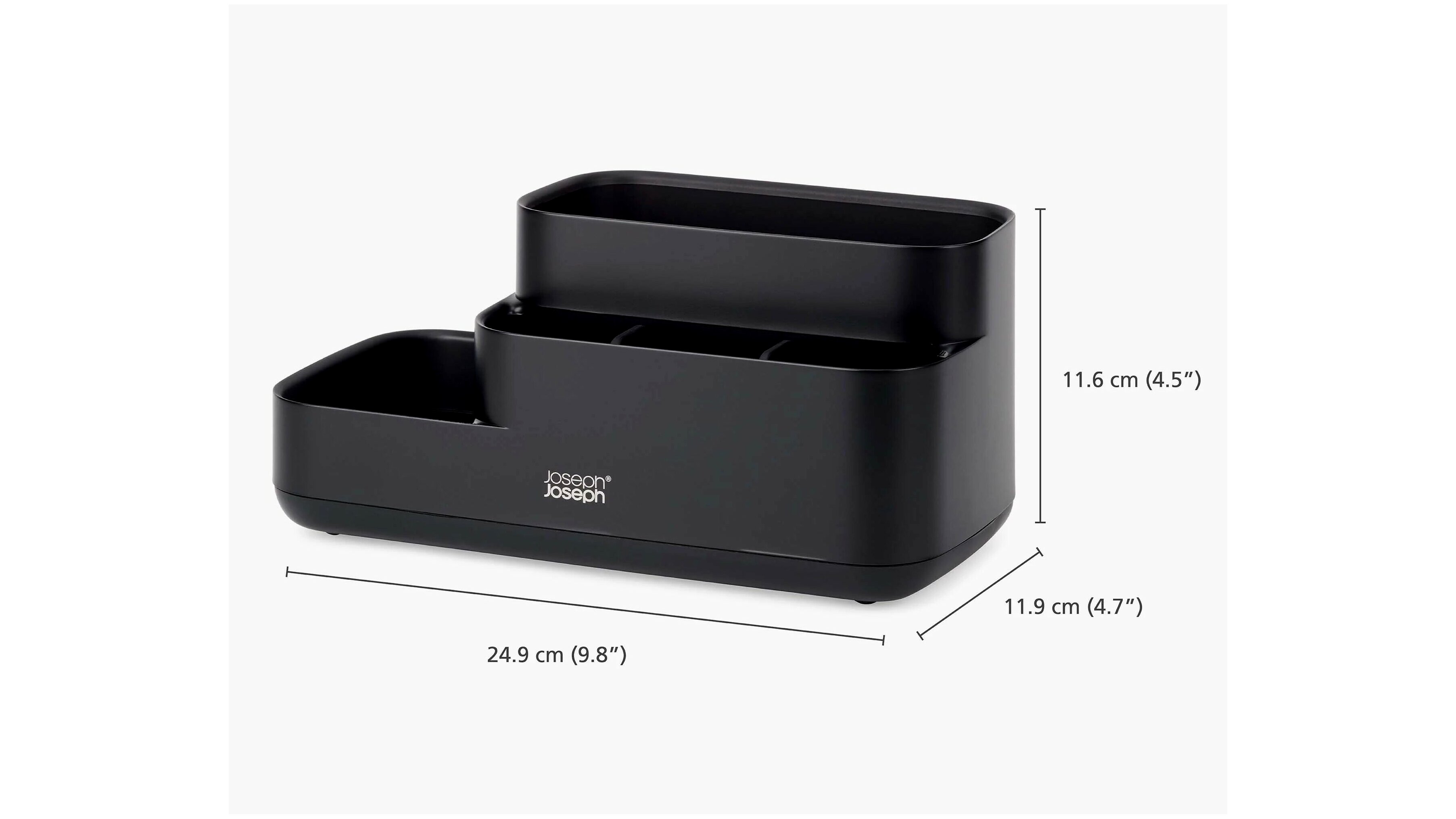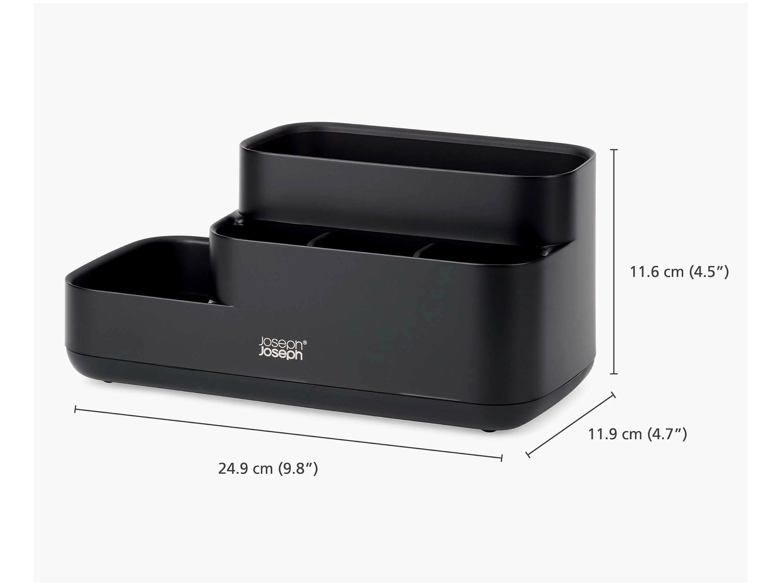 - Tiszta és rendelett megjelenés: A különböző méretű rekeszek és a stílusos matt fekete kialakítás elegáns megjelenést biztosít.