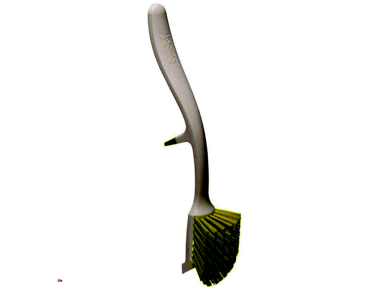 - Praktikus támaszték: A kefe beépített támasztófejjel rendelkezik, amely lehetővé teszi, hogy a kefe könnyedén felakasztható legyen a mosogató szélén, így nem csöpög vissza a víz a mosogatóba.