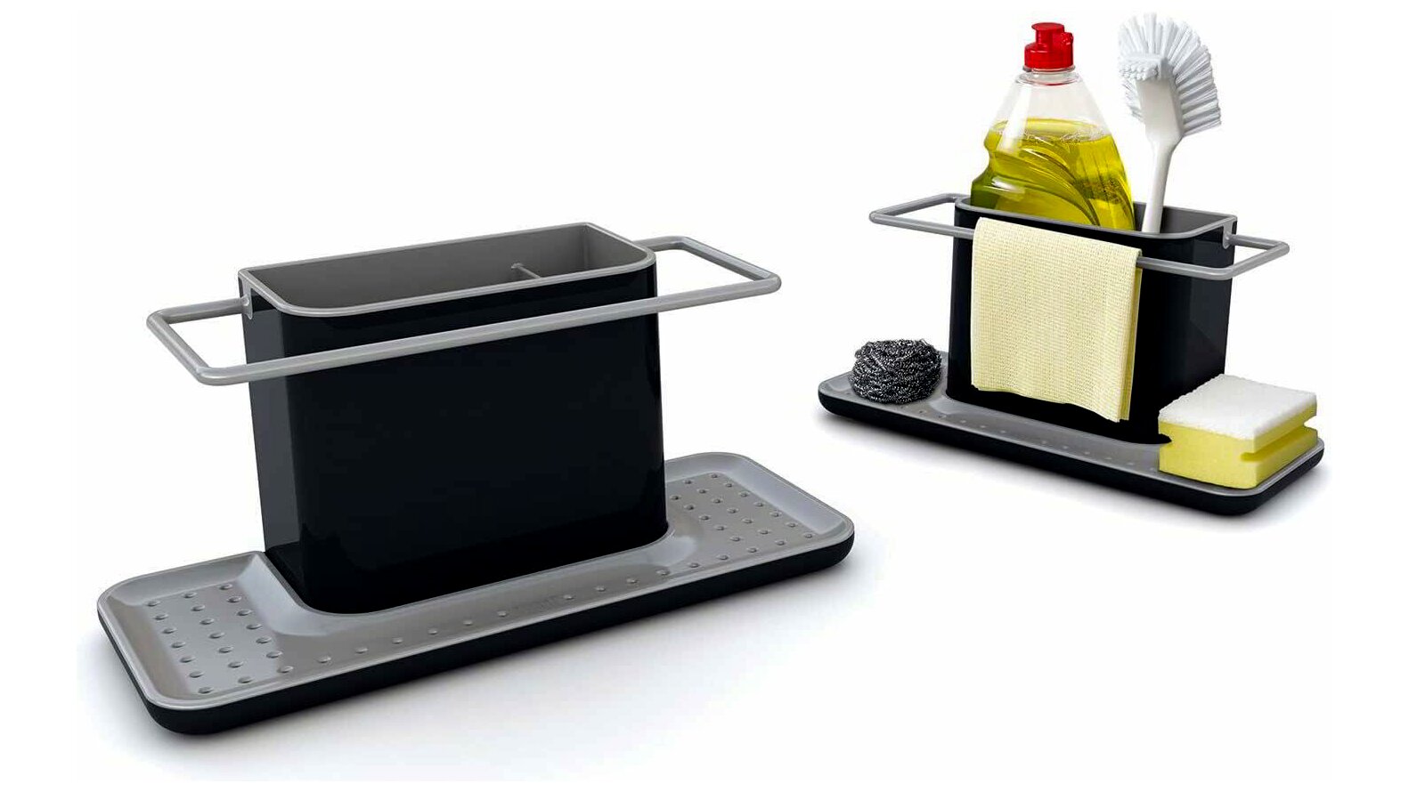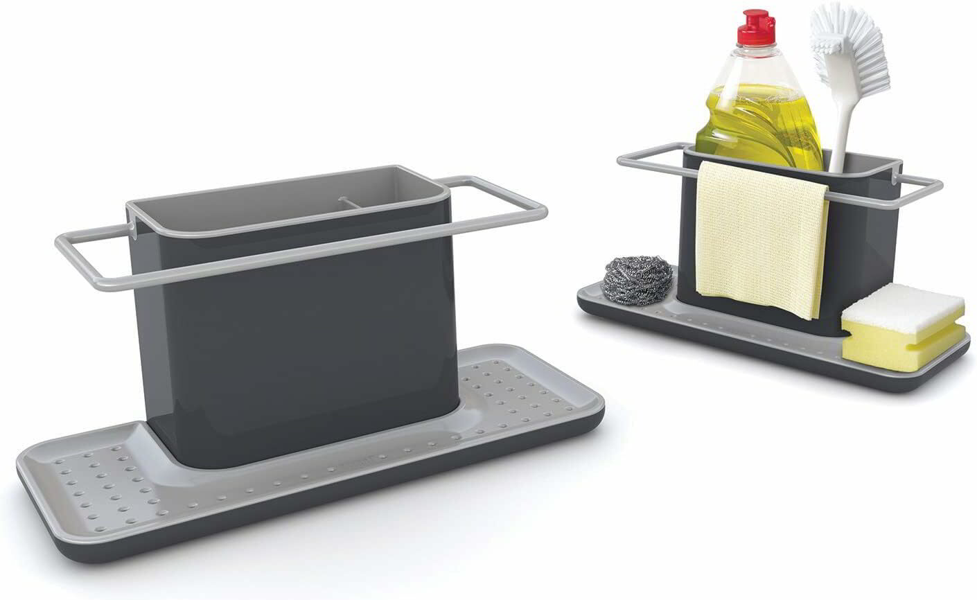 A Joseph Joseph által tervezett Caddy mosogatószervező tökéletes megoldás a konyhai rend fenntartására. Ez a nagy méretű, szürke színű eszköz bármely modern konyha elengedhetetlen kiegészítője lehet. Segítségével egyszerűen és rendezetten tárolhatja tisztítószer kellékeit, mint például a szivacsot, mosogatószert, keféket és egyéb eszközöket.