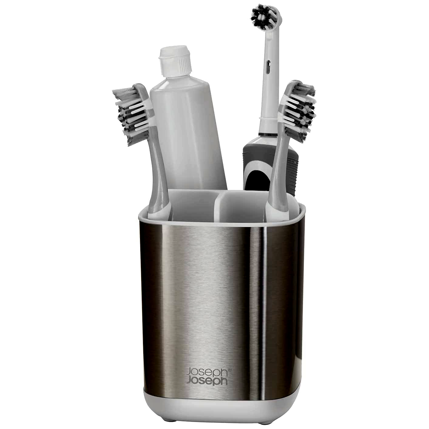 Ezek a kompakt fogkefetartók különböző részekre vannak osztva, hogy szervezett tárolást biztosítsanak különféle szájápolási cikkek számára, mint például a kézi vagy elektromos fogkefék és a fogkrém tubusok.