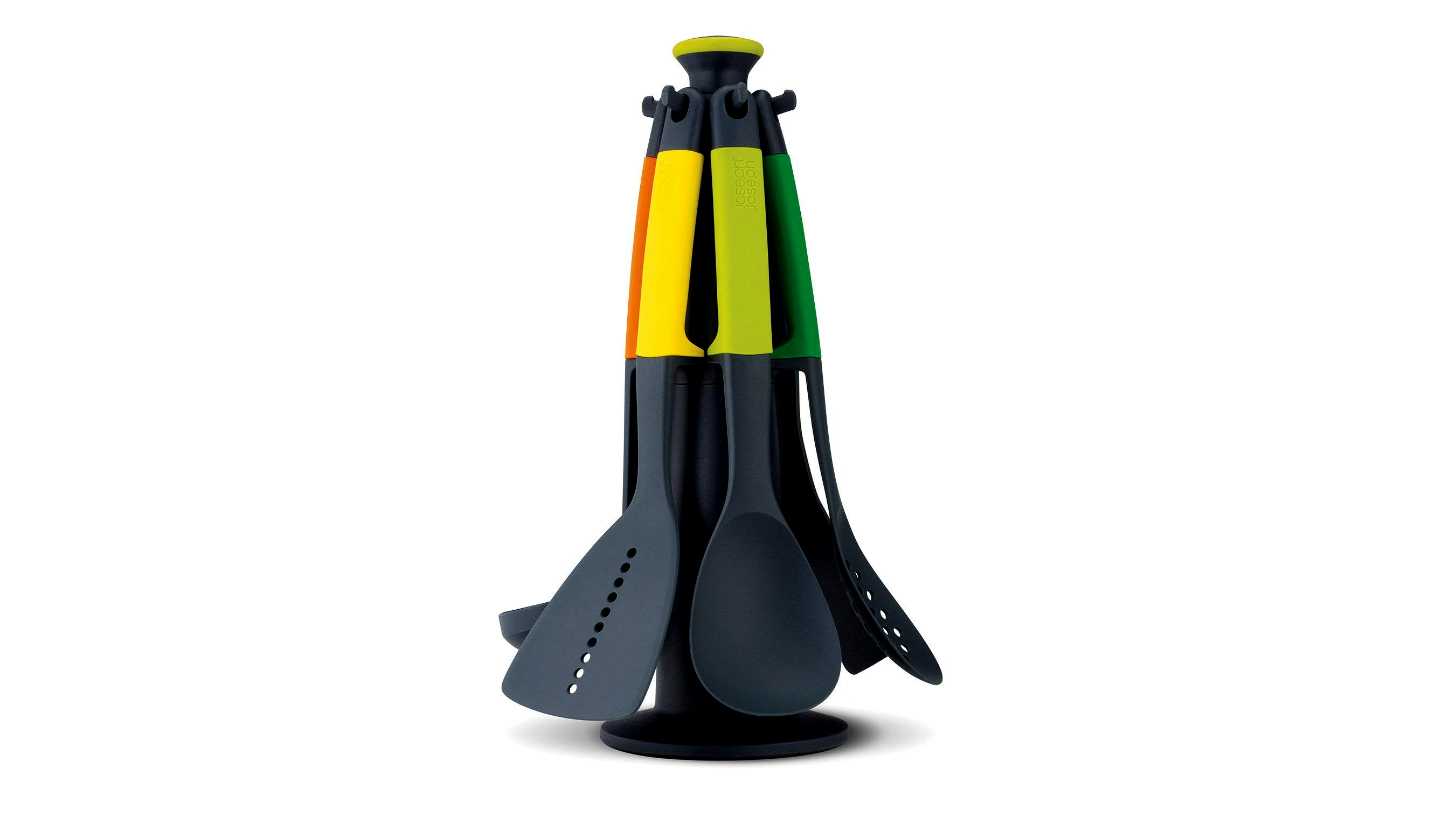 Az Elevate ™ Carousel Set hat alapvető konyhai szerszámból és egy állványból áll, hogy stílusosan tárolja őket a konyhában.