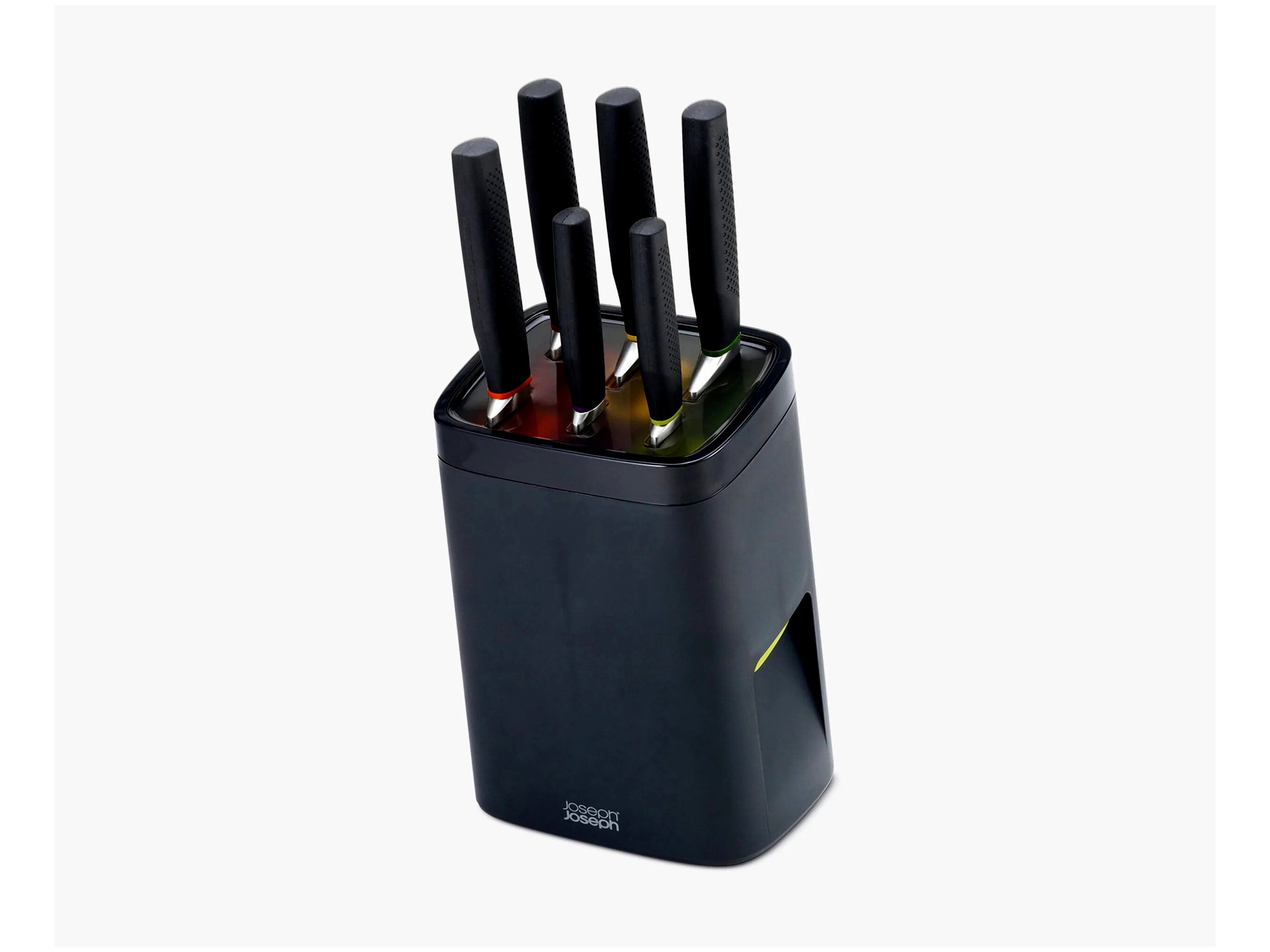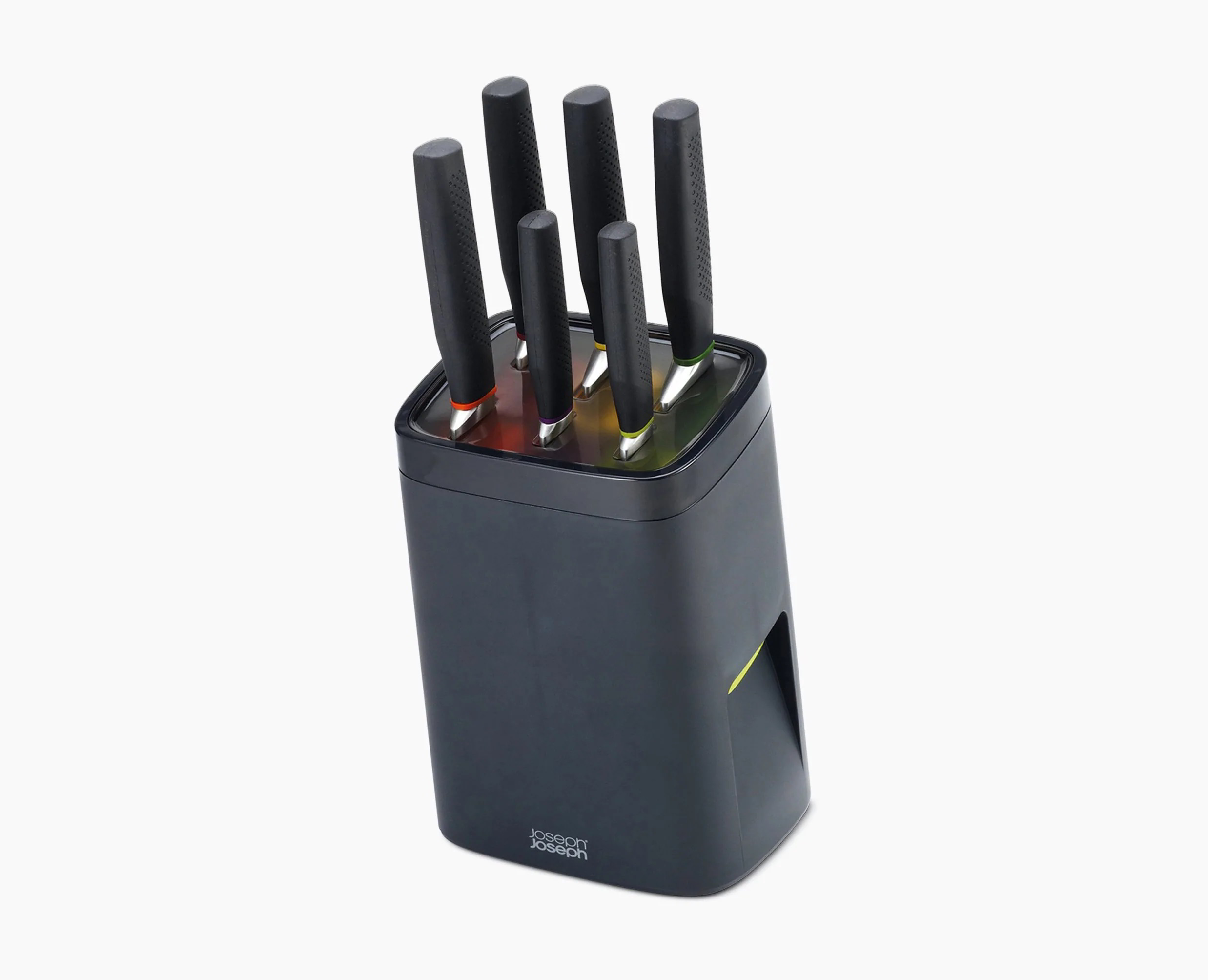 A Joseph Joseph márka híres a funkcionális és igényes kialakítású konyhai eszközeiről. Az Elevate ™ kés szett sem kivétel: nemcsak praktikus, hanem stílusos kiegészítője is lesz konyhádnak. Egyedülálló gyerekzáras rendszerének köszönhetően ideális választás olyan háztartásokba, ahol kicsik is lehetnek a közelben.