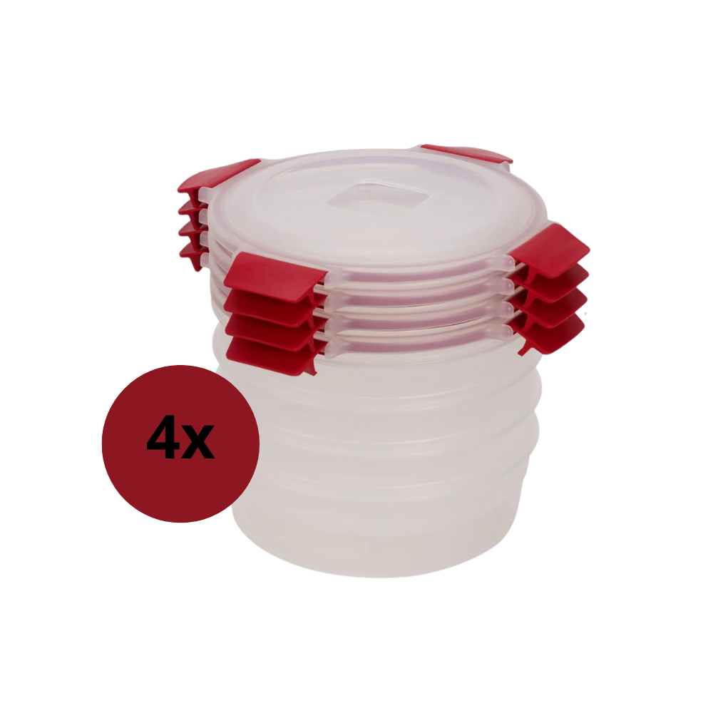 4 db 1 literes kerek tárolóedény hozzáillő fedéllel