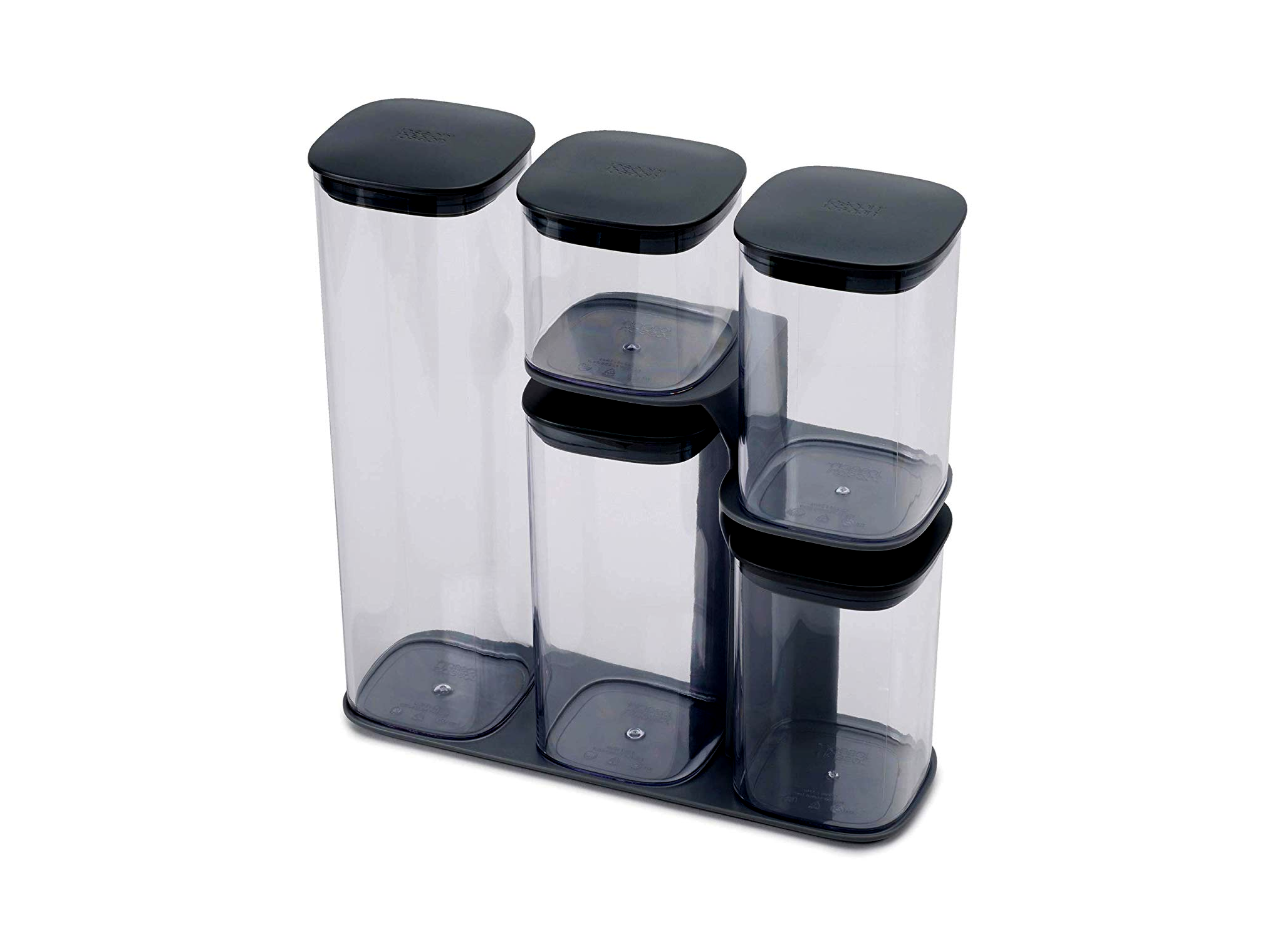 Legyen szó tésztáról, lisztről, cukorról vagy bármilyen száraz élelmiszerről, a Joseph Joseph Podium 81071 műanyag ételtároló edény készlet praktikusan és stílusosan segít a konyhai szervezésben. A készlet öt különböző méretű tartályt tartalmaz, melyek mindegyike tömítéssel ellátott, hogy az ételek mindig frissen maradjanak.