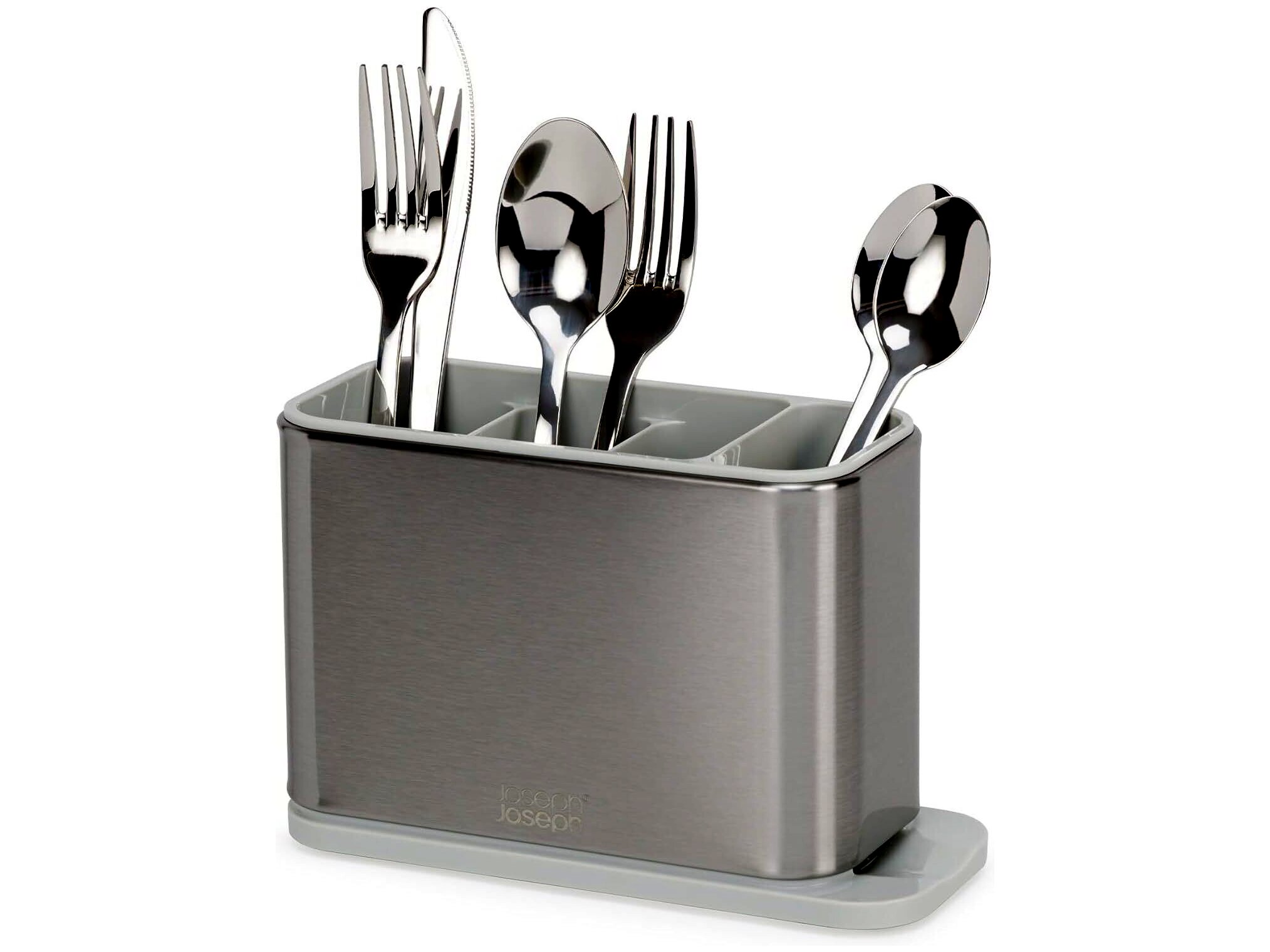 Tegye konyháját még praktikusabbá és rendezettebbé a Joseph Joseph felület rozsdamentes acél evőeszköz csepegtető segítségével! Ez a modern és elegáns eszköz ideális megoldás az evőeszközök higiénikus szárítására és tárolására.