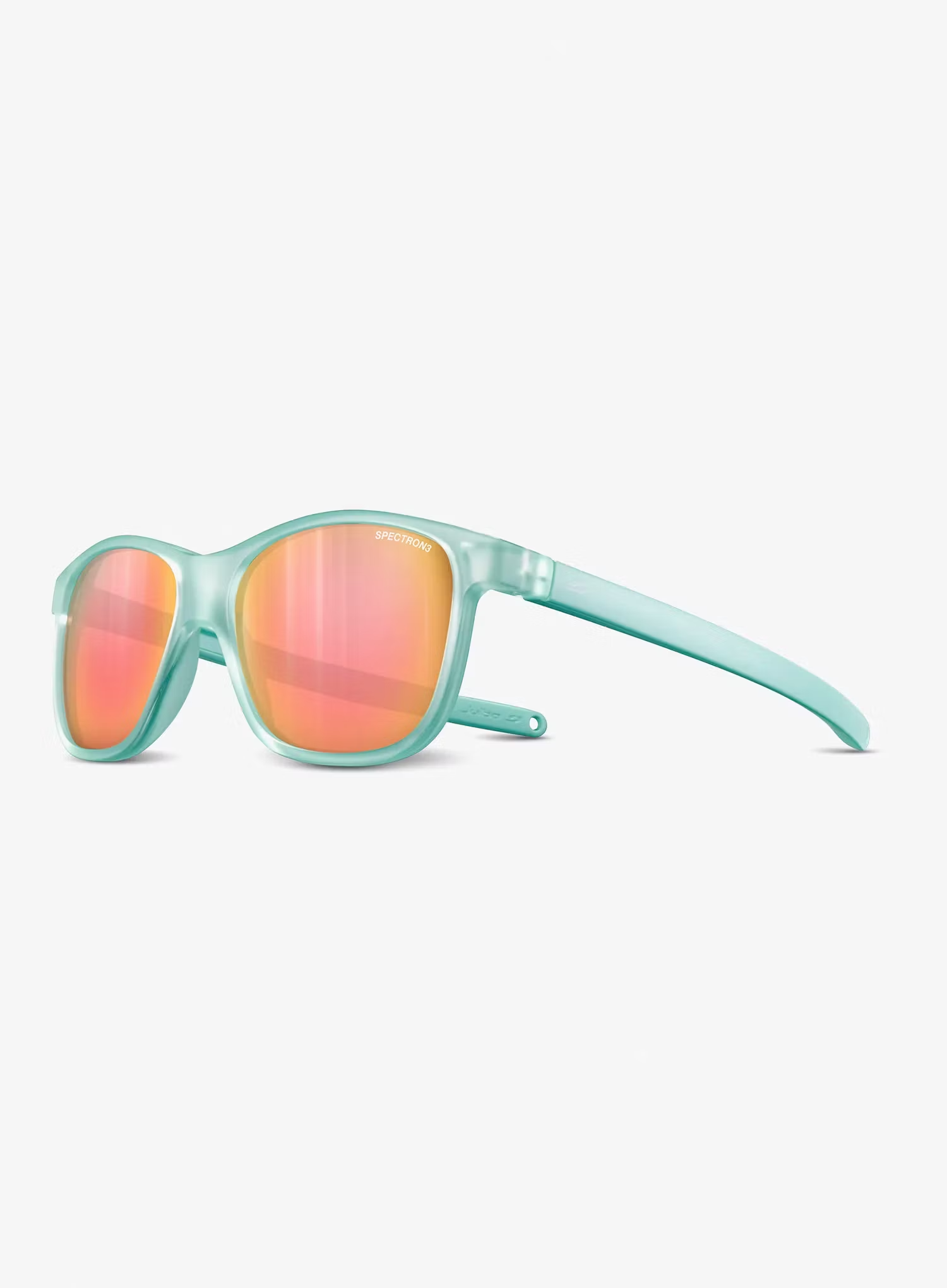 A matt mentazöld keret és a pasztellkék részletek üdék, vidámak és könnyen kombinálhatók gyerekruházattal. A tükörbevonatos lencsék modern, „felnőttes” sportos megjelenést adnak, amit a gyerekek kifejezetten szeretnek viselni.