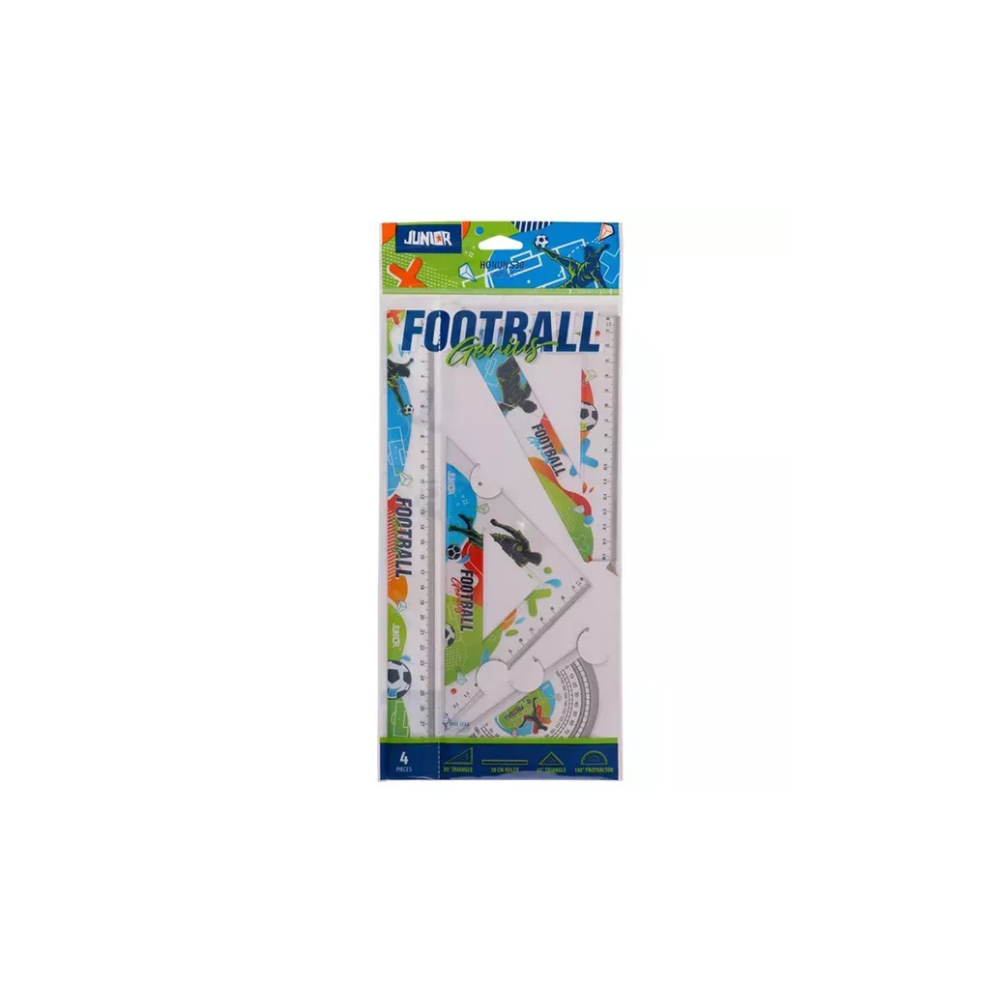 Ez a színes és vidám, foci mintákkal ellátott vonalzó készlet mind a fiúk, mind a lányok kedvence lehet. Ideális választás iskolai és otthoni használatra egyaránt, garantáltan feldobja a mindennapi tanulást.