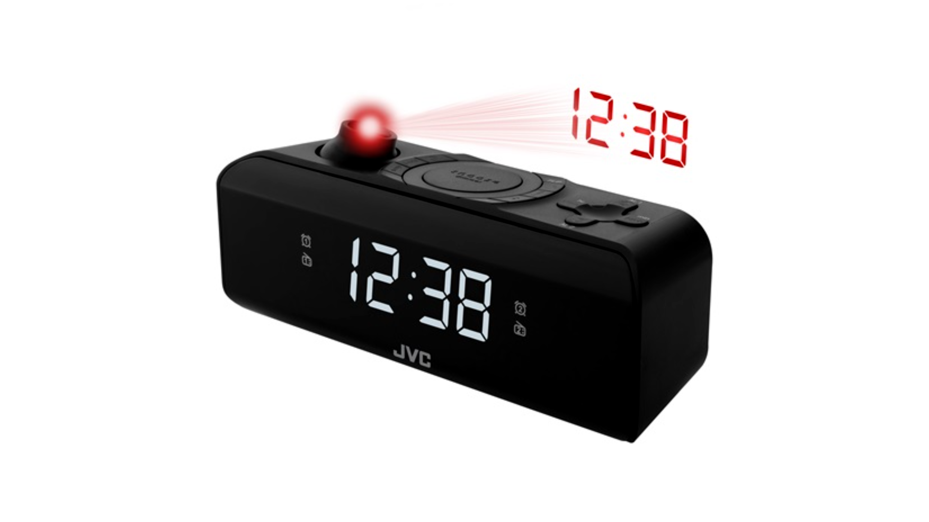 A JVC RA-E211B Rádiós ébresztőóra első ránézésre elegáns dizájnnal és nagy LED kijelzővel érdekes megjelenésű. Az időt mutató számok 22 mm magasak. A kijelző fényerejét a Dimmer funkció segítségével lehet beállítani. Nagyon praktikus funkció a falra való idő kivétítése is, 180° fokos forgatási lehetőséggel. A rádiós ébresztőóra lehetővé teszi kettő, egymástól független, ébresztési idő beállítását. Mind a két esetben lehet az ébresztési módnak a hangot vagy előre beállított rádió csatornát használni. A digitális tunernek köszönhetően lehet könnyen csatornákat hangolni FM és AM sávokban és utána akár 10 csatornát minden sávban lementeni. Ha szeretne kedvenc rádió csatornájának hallgatása közben elaludni, nagyon hasznos a Sleep funkció. Ébresztésnél pedig lehet a Snooze funkciót használni.
