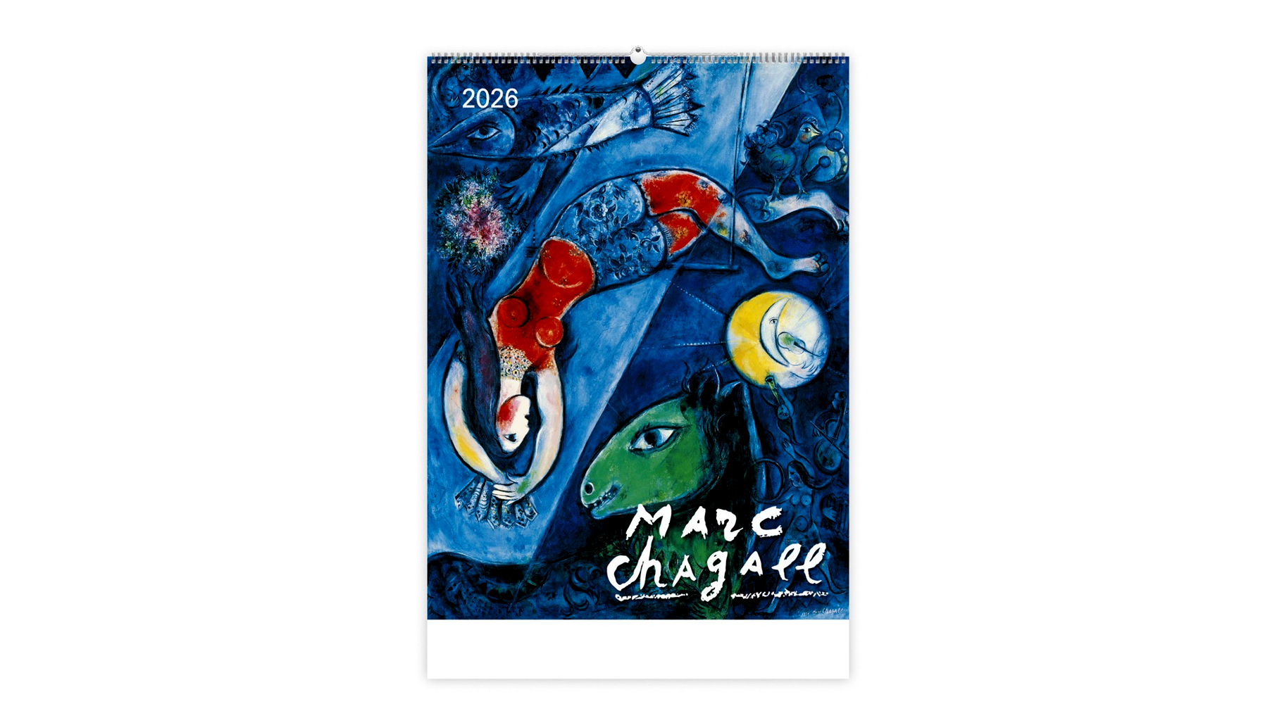 A naptár minden egyes hónaphoz egy-egy Marc Chagall festményt tartalmaz, amelyek nemcsak informatív, hanem művészeti élményt is nyújtanak. A nagy méretű (45 x 56 cm) lapoknak köszönhetően a részletek gyönyörűen kidolgozottak, minden napra inspirációt nyújtanak.