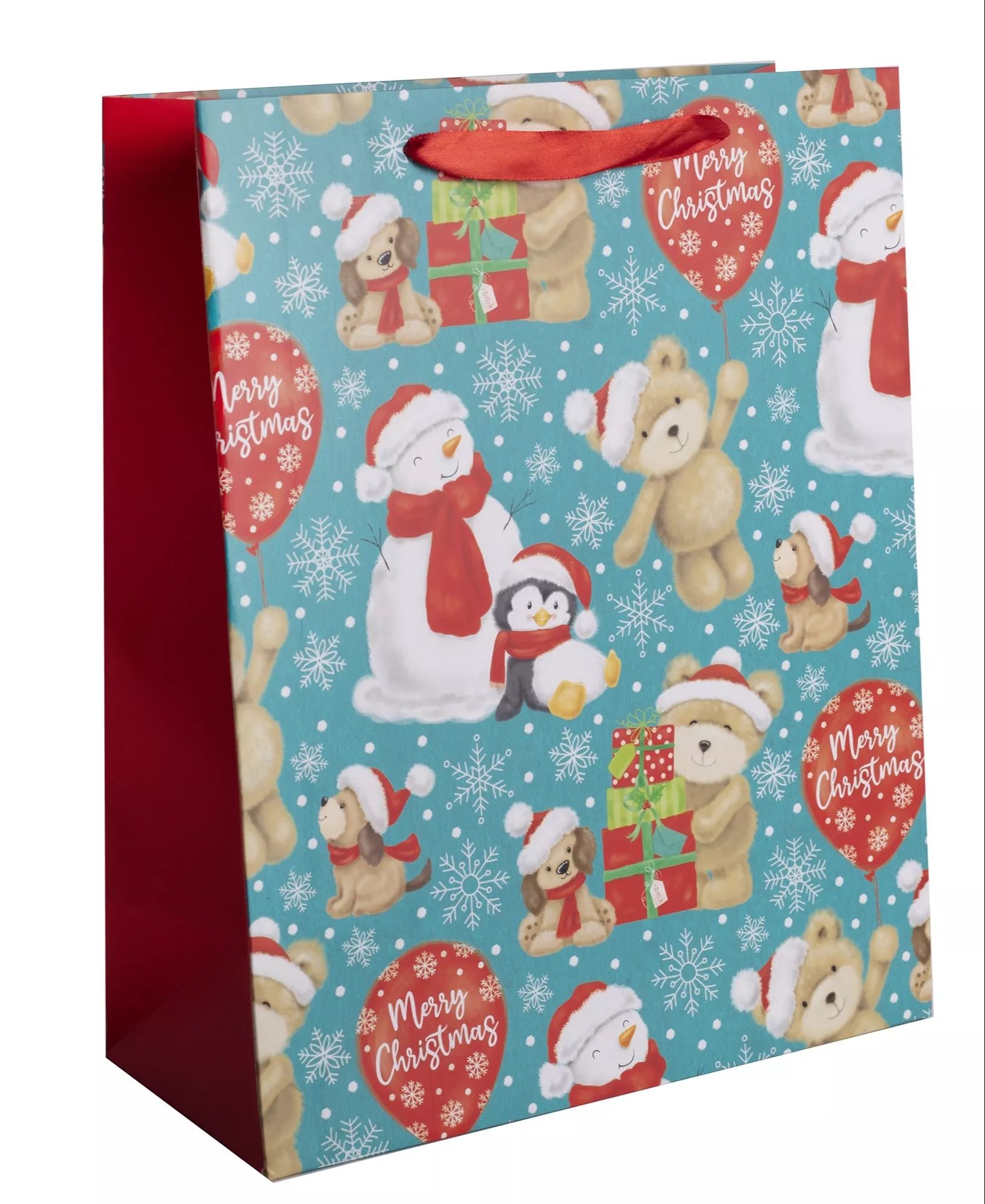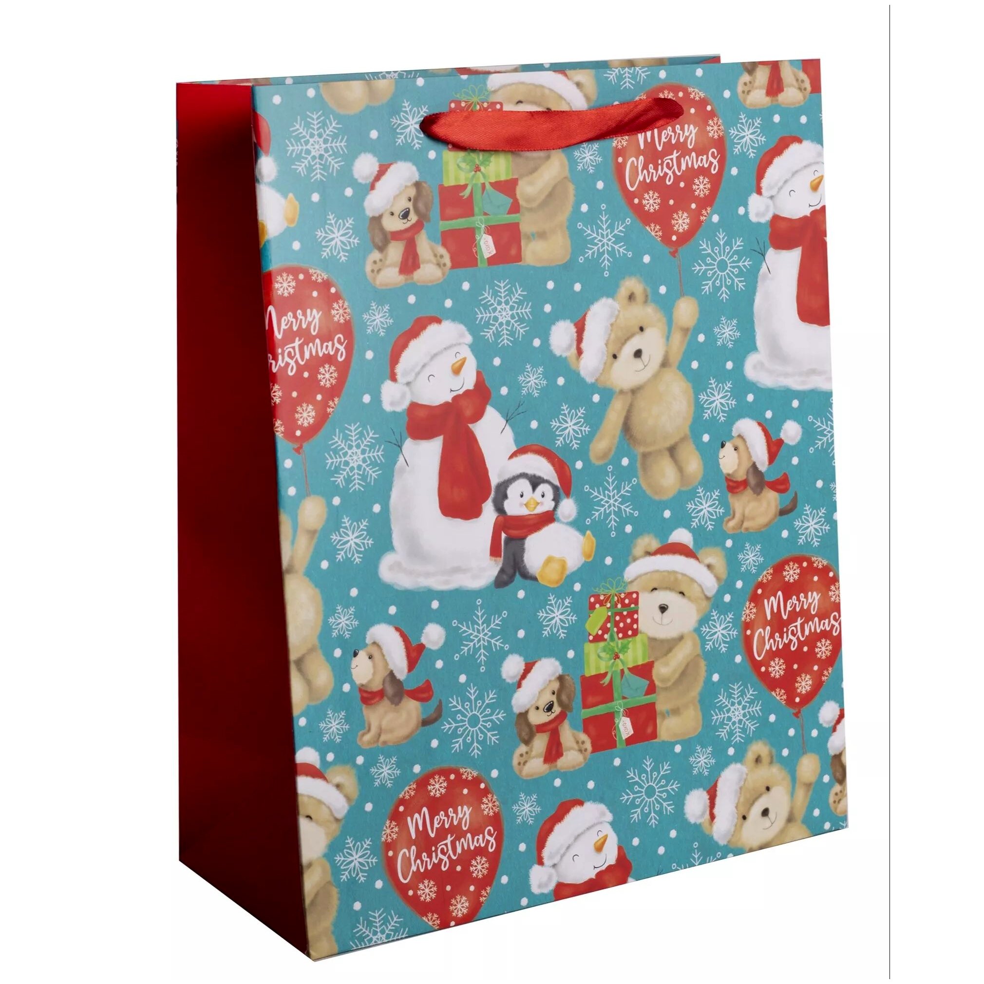 Ez az aranyos ajándéktasak garantáltan elvarázsolja szeretteit az ünnepi szezonban! A hóembert és kedves állatokat ábrázoló minta boldogságot csempész minden ajándékozás pillanatába. Tartós és praktikus kialakítása révén többször is felhasználható, ezzel csökkentve a környezetre gyakorolt negatív hatást.