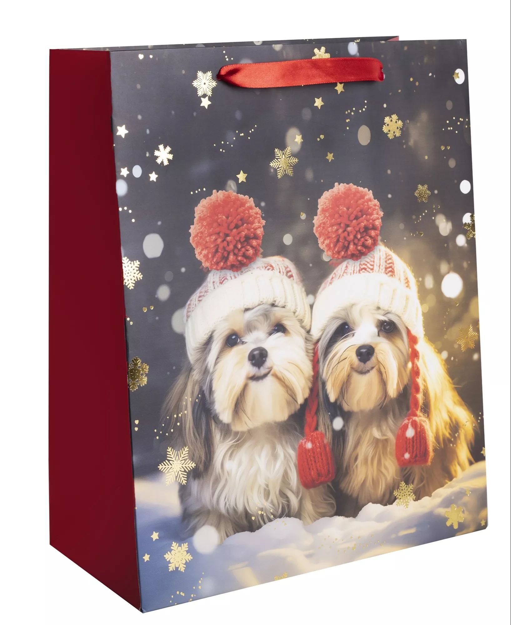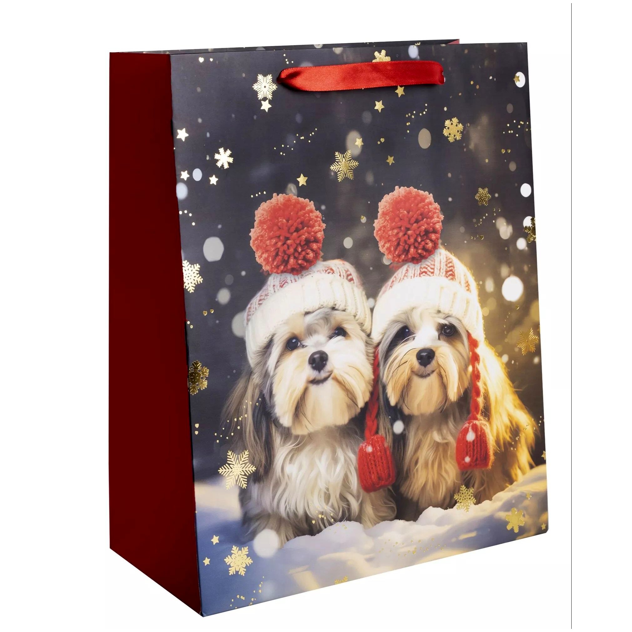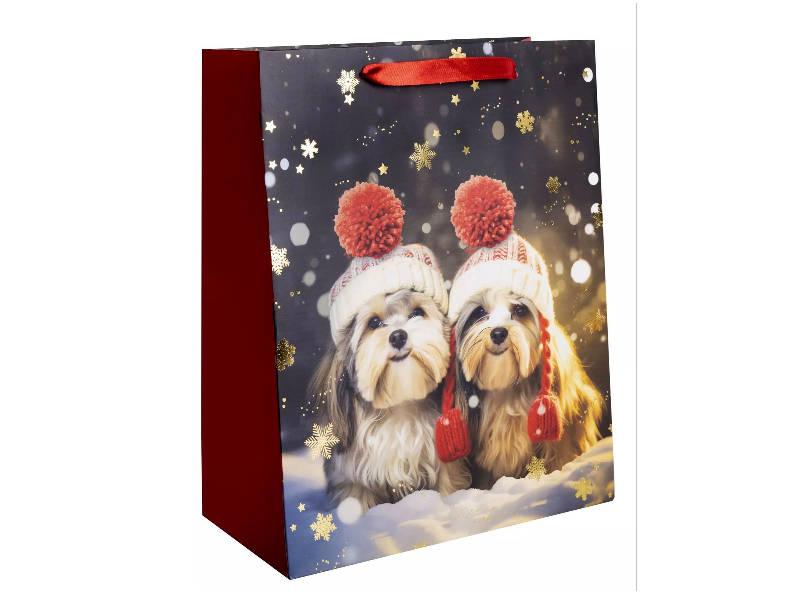 Válaszd ezt az édes és vidám karácsonyi kutyás ajándékzacskót, és tedd felejthetetlenné az ajándékozás élményét!
