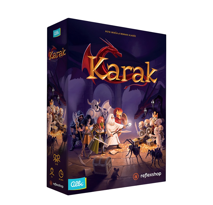 Kíváncsi vagy rá, mir rejlik a Karak kastély omladozó falai között? Egy labirintus tele kincsekkel...és szörnyekkel! A hat bátor játékosnak apránként, lapkáról-lapkára kell felfedezni hogyan is néz ki a labirintus. Fegyverekkel és varázslatokkal kell felvértezniük magukat, szörnyekkel kell küzdeniük és (ami a legfontosabb) kincseket gyűjteni. Az a játékos nyer, akinek a legtöbb kincse van a játék végén – az lesz Karak igazi bajnoka! A Karak egy nagyon könnyen tanulható társasjáték, amit 7 éves kortól is játszhatnak a gyerekek. Egyszerű bevezető játék a szerepjátékok világába. A játékmenet erősen épít a lapka-elhelyezés, a moduláris tábla, térkép kiegészítés a kockadobásra. A Karak 2018-ban az Év gyerekjátéka volt Csehországban.