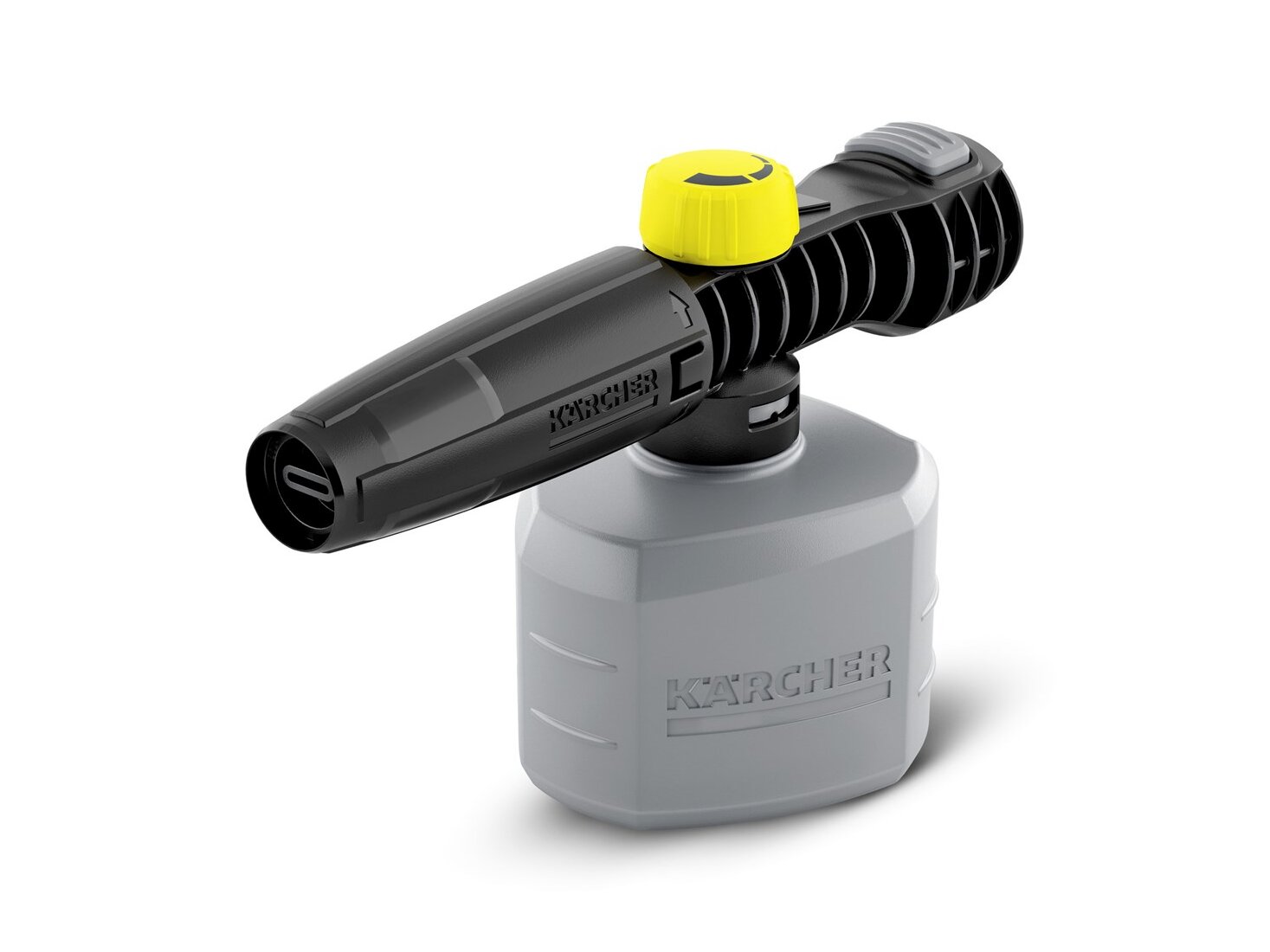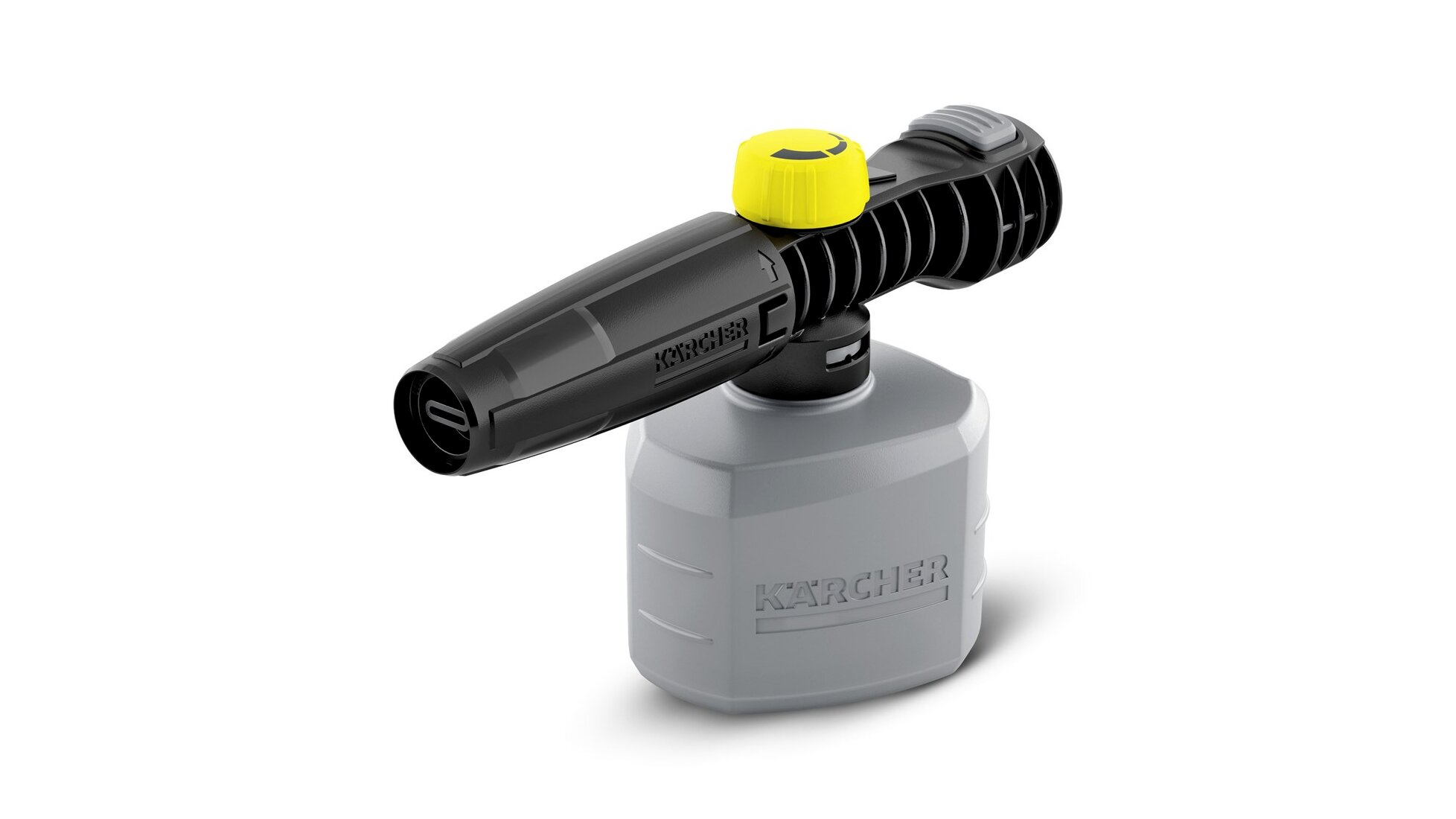 Az igazán tiszta eredményhez néha többre van szükség, mint csupán víz. A Kärcher kézi készülékekhez való FJ 24 kézi habosító fúvókával mindez gondmentesen kivitelezhető. Egyszerűen töltse meg a 0,3 literes tartályt Home & Garden tisztítószerrel, illessze a habosító fúvókát a hosszabbítóra, és már kezdheti is: az alapos habnak és a szükség esetén elfordítható sugárnak köszönhetően végre minden játszi könnyedséggel tiszta lehet. A tisztítószer hozzáadása kényelmesen vezérelhető a fúvókán lévő sárga gomb segítségével. A bevált Quick Connect rendszerrel a habosító fúvóka és a hosszabbító cső csatlakozója egy kézzel kilazítható, hogy egy másik Kärcher kézi készülékhez való tartozékra legyen cserélhető. Az FJ 24 habfúvóka a KHB és az OC 6-18 modellekhez használható, nem használható azonban a K 2 - K 7 kategóriájú magasnyomású tisztítókkal.