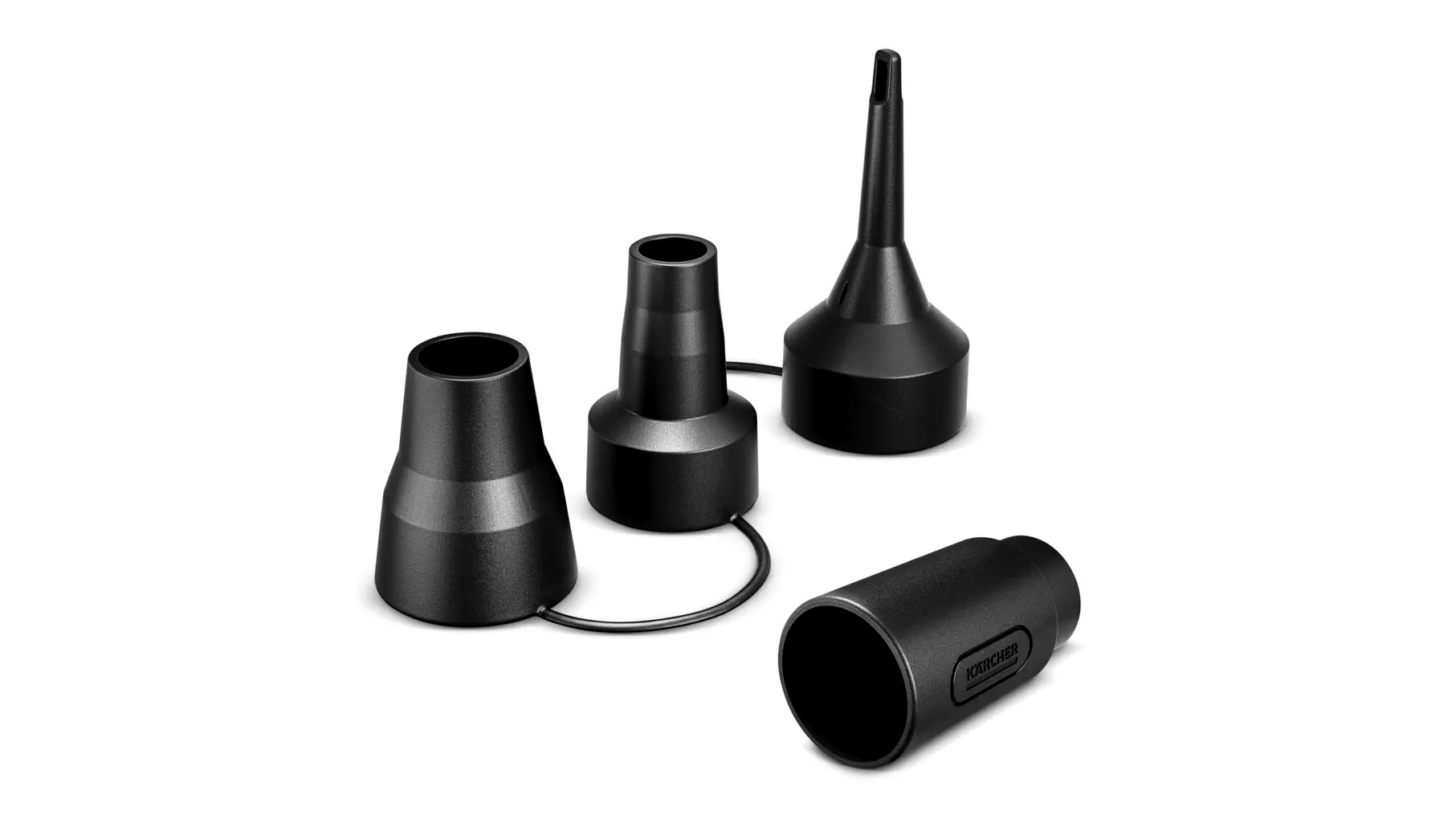 A Kärcher Fúvóka Adapter Készlet ideális választás, ha kiterjesztené Kärcher porszívójának funkcióit. Ezzel az adapter készlettel könnyedén alakíthatja át porszívóját erőteljes levegőfúvóvá, amely segíthet a nehezen elérhető helyek tisztításában, legyen szó akár garázsról, műhelyről vagy udvarról.