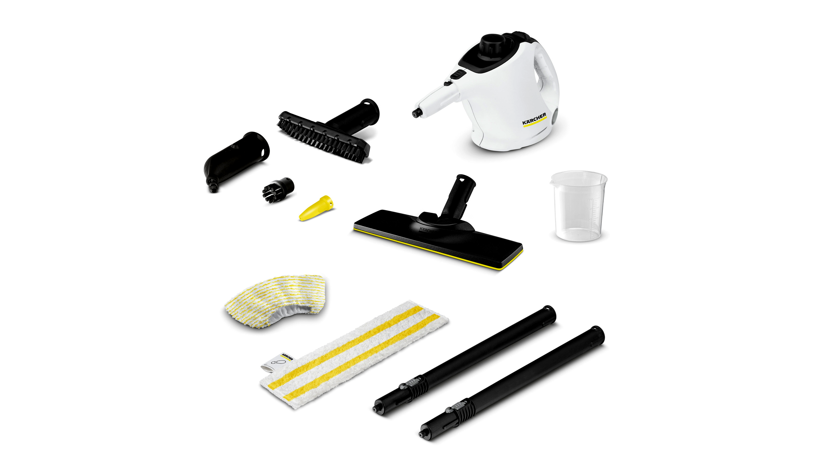 A kompakt Kärcher 2 az 1-ben SC 1 EasyFix gőzfelmosó (padlótisztító készlettel) az egész háztartásban univerzálisan használható és teljesen vegyszermentesen tisztít. A Kärcher gőztisztítókkal végzett alapos tisztítás elpusztítja a háztartási kemény felületeken a háztartásokban előforduló összes baktérium 99,99 százalékát. Kompakt méreteinek köszönhetően a készülék a gyors, alapos tisztításra terveztetett. A munka után nagy helyigény nélkül közvetlenül a felhasználási helyén tárolható. Legyen szó szerelvényekről, csempéről, főzőlapról, páraelszívóról vagy kisebb nyílásokról és mélyedésekről – az erőteljes gőz és a széles tartozékkínálat kifogástalan tisztaságról gondoskodik. Az EasyFix padlótisztító készlet a praktikus kézi gőztisztítót pillanatok alatt átalakítja a padlótisztításhoz. A makacs szennyeződések és a zsírlerakódások szempillantás alatt eltávolíthatóak.