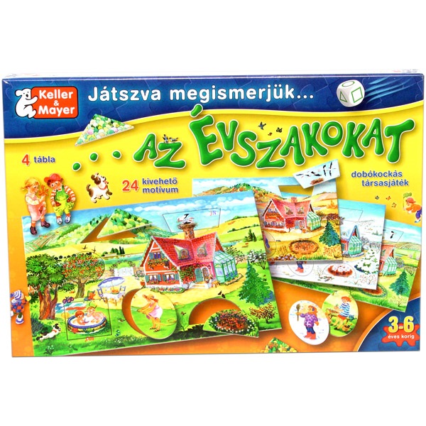 A játék célja a megfelelő kis elemek beillesztésével a nagy kép kiegészítése. A képek környezetünket ábrázolják a négy évszakban. A beillesztendő hat kis elem mindegyike az adott évszakra jellemző sajátosságot ábrázol: a fák koronáját, játékot a szabadban, öltözködést, gólyacsaládot, virágokat, hegyoldalt. A gyermek játék közben megismeri és megérti az évszakok változásának a környezetünkre gyakorolt hatásait. Télen alaposan felöltözve hóembert építünk, havas a hegyoldal is. Tavasszal virágba borul a fa a kertben, nyáron kikelnek a kis gólyák a fészekben, ősszel rozsdabarnára változik a hegyoldal és üres már a gólyafészek is.
