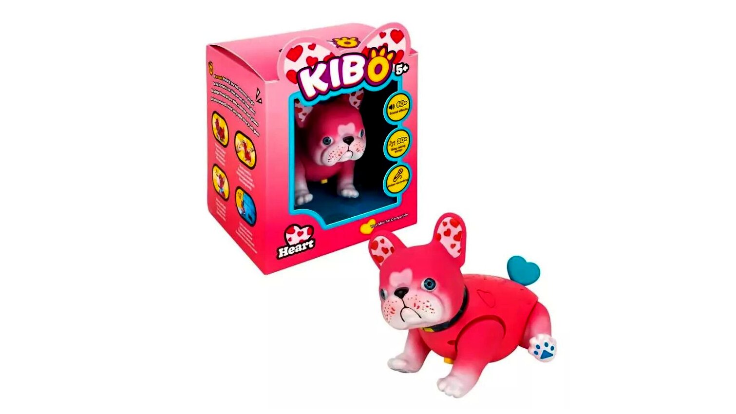 Rózsaszín teste, szívecskés fülei és kék szívecske-farka azonnal magára vonja a figyelmet. A szívecske-motívumokkal díszített „szeretetkutyus” az érzelmekre építő játékokhoz ideális: kiváló választás azoknak a gyerekeknek, akik nagyon szeretnének saját kutyust, de élő állatra még nem állnak készen.