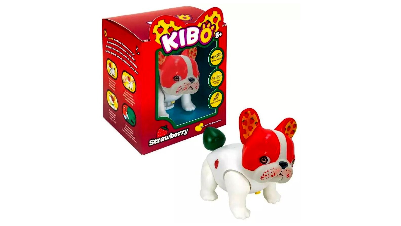 Az interaktív francia bulldog kölyök úgy lett megtervezve, hogy viselkedése meglepően hasonlít egy valódi, játékos kiskutyáéhoz. Fehér teste, piros pofija és eperrel díszített fülei azonnal magukra vonzzák a gyerekek figyelmét, a mozgásai és reakciói pedig életre keltik a figurát.