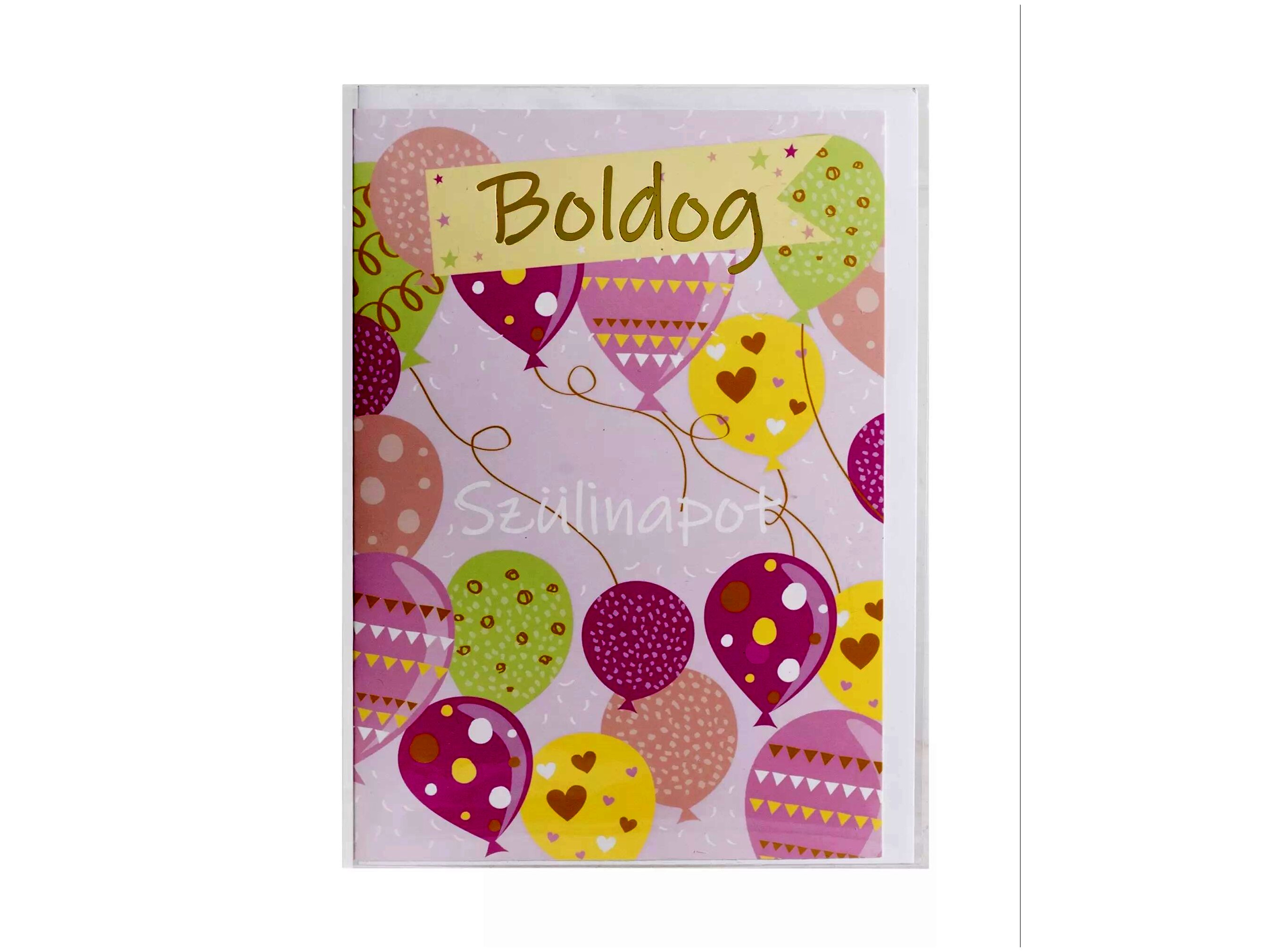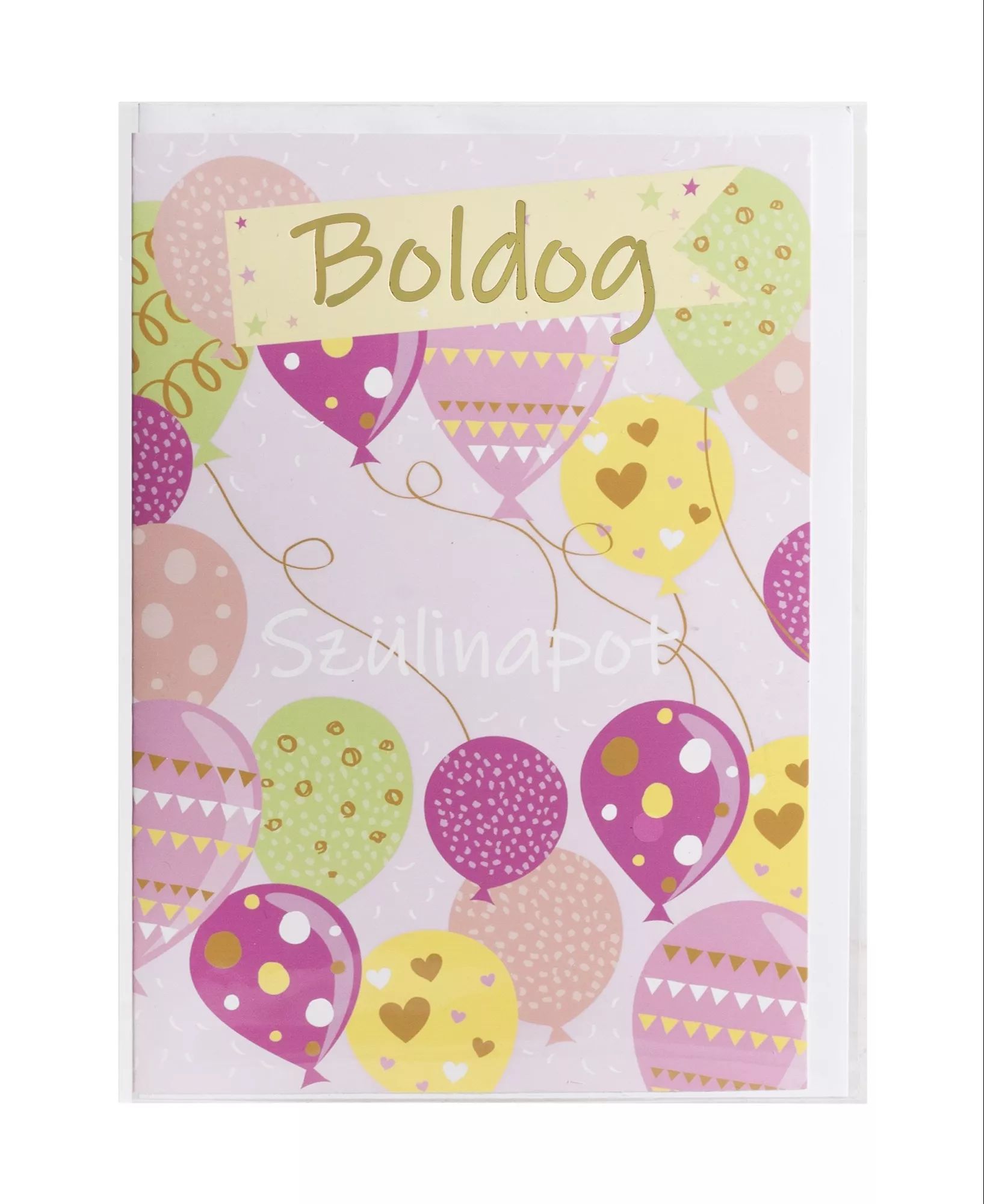 Ünnepi Rózsaszín Lufi Mintás Képeslap „Boldog Szülinapot” Felirattal